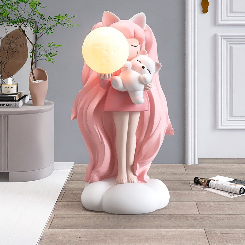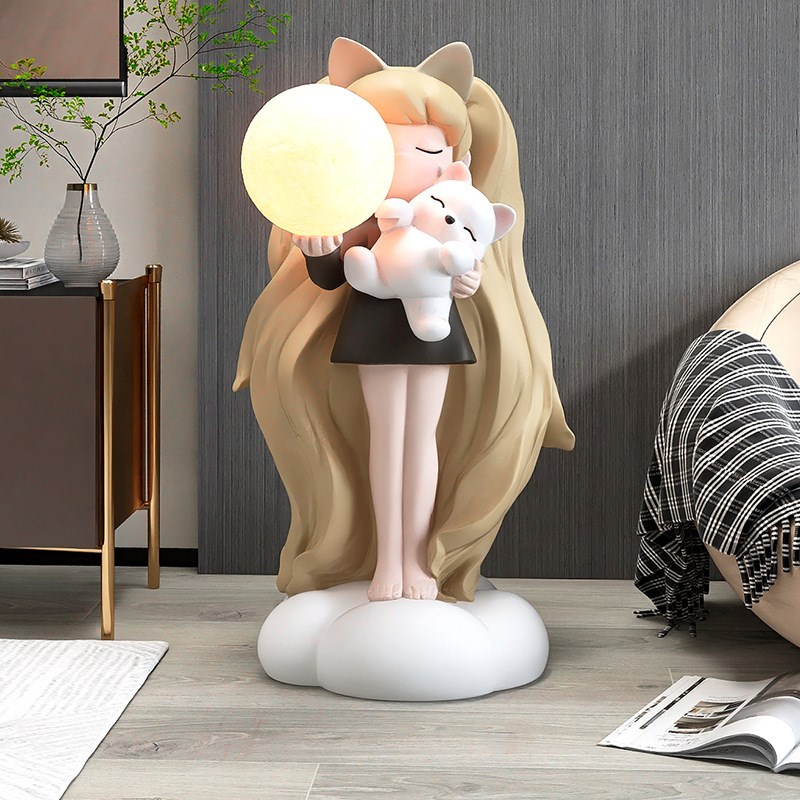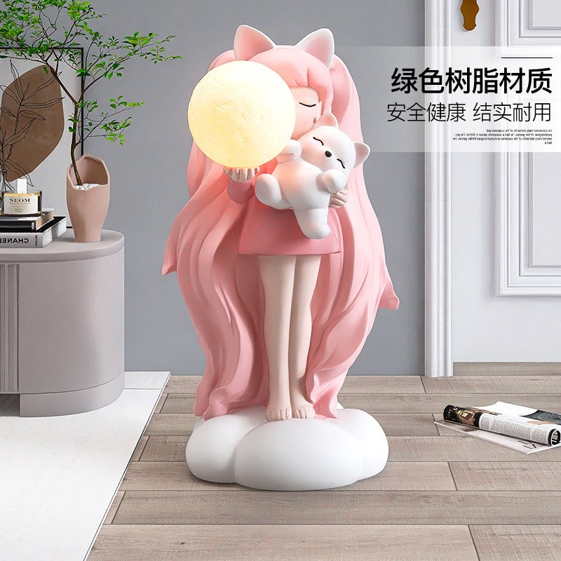 大型女孩落地摆件家居饰品客厅电视柜沙发旁卧室床头夜灯乔迁礼物