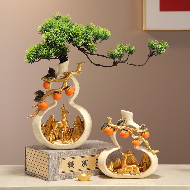 新中式招a财葫芦迎客松花瓶摆件客厅玄关办公室装饰乔品迁开业礼