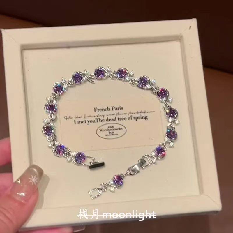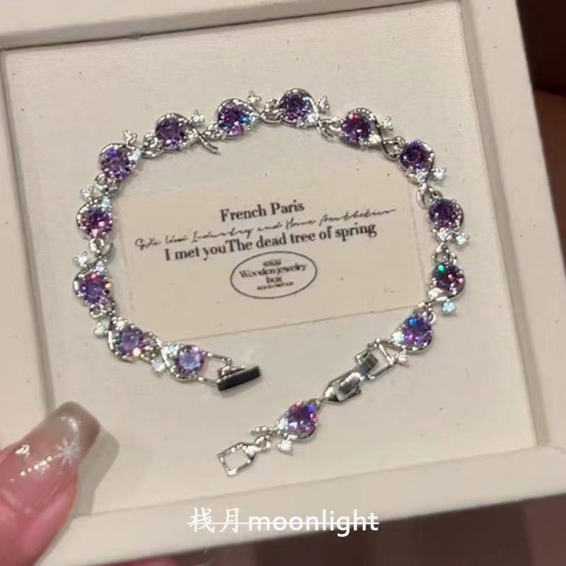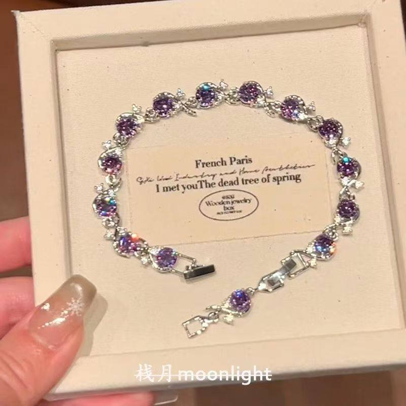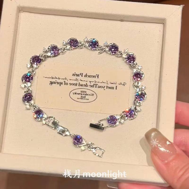 2025新款复古爆闪紫色轻奢手链小众设计满钻高颜值手饰送闺蜜