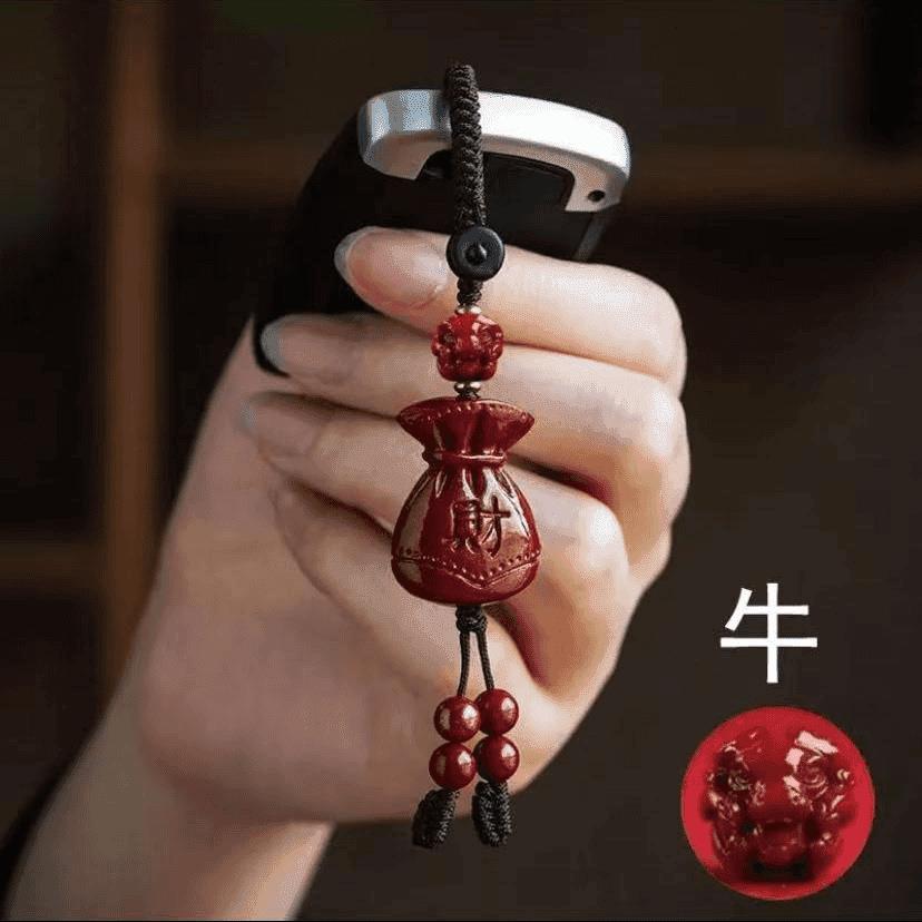 2026朱砂钥匙扣汽车挂钥匙挂手机挂随身包挂装饰乾坤钱袋子配件低