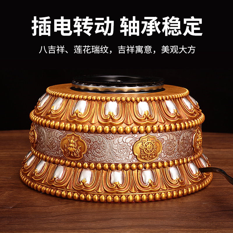 藏式浮雕家用电动转轮转桶插电树脂摆件转筒家居办公礼品摆件