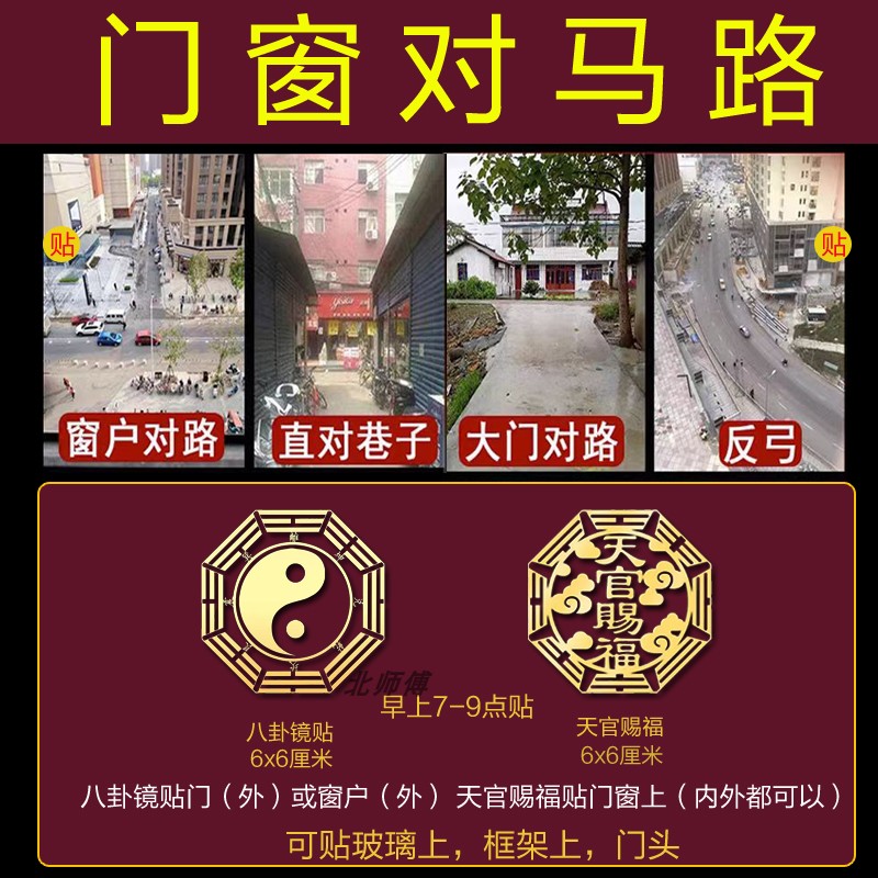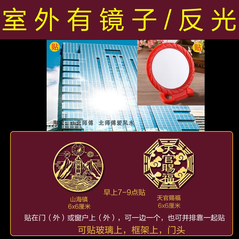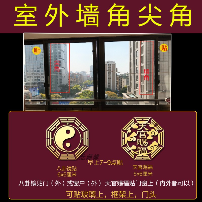 化解路冲大门对屋角室外尖角反光电线杆壁刀阳台卧室窗五帝钱挂件