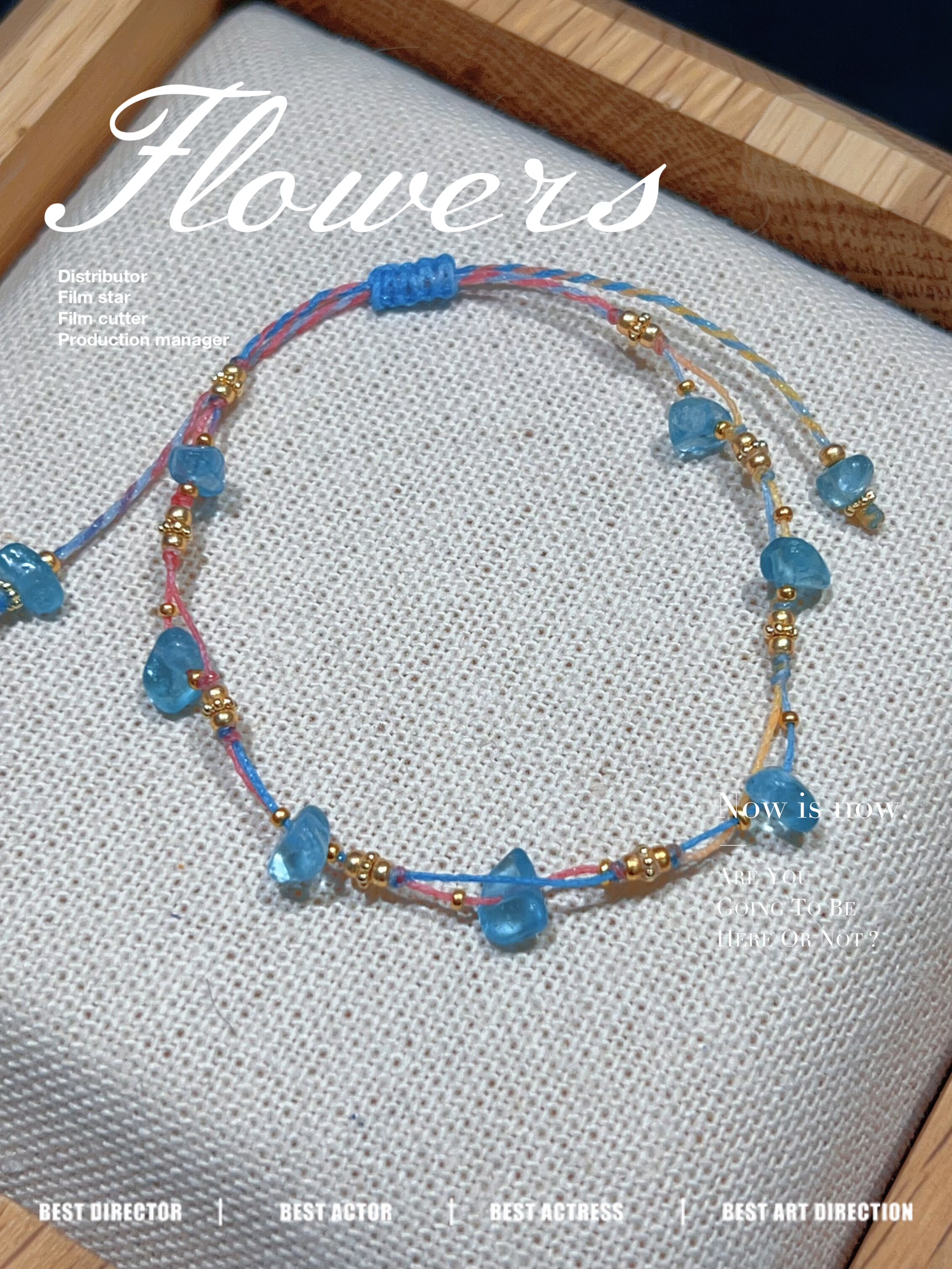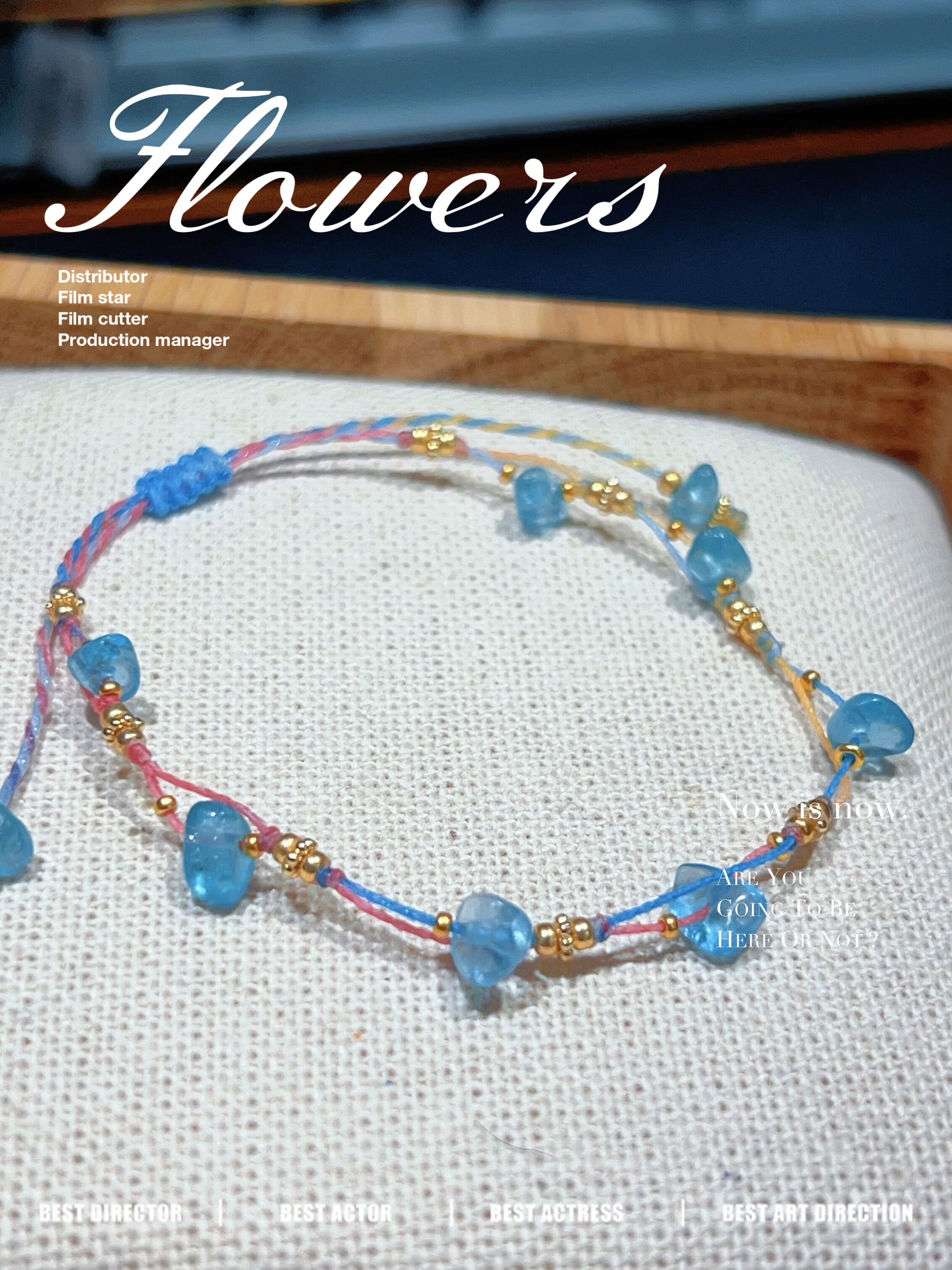 天然磷灰石碎石手链女款双层绳编小红绳原创设计小众高级感叠戴