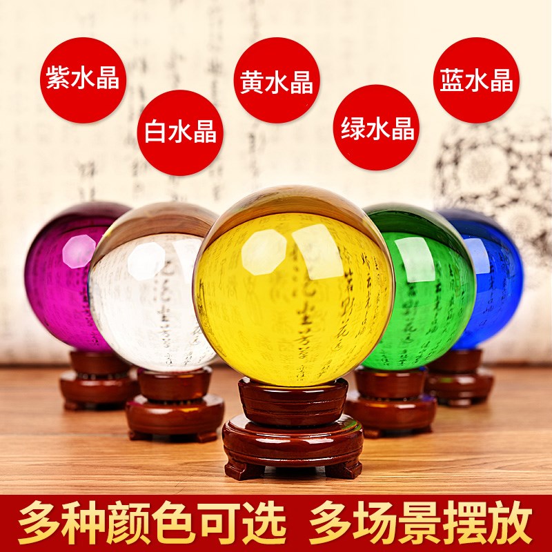 黄色白水晶球摆件透o明玻璃圆球客厅蓝紫粉家居大小号开业装饰摆