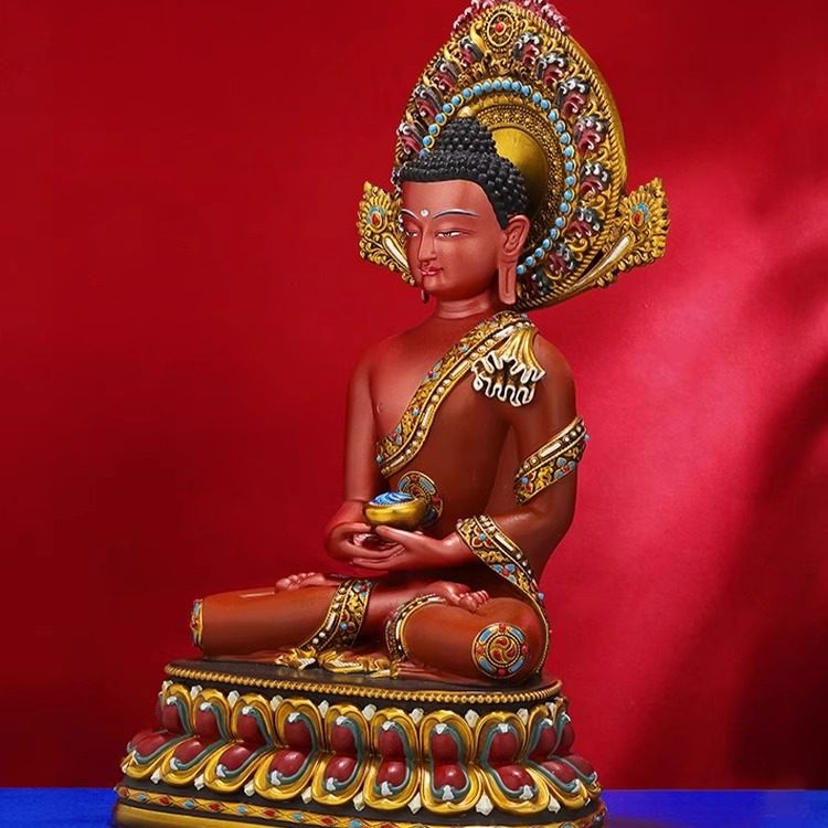王师兄纯铜彩绘阿弥陀佛精品佛仿古铜像可拆摆件藏式尼泊尔家供