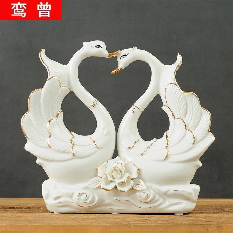 极速新款卧室天鹅陶瓷摆饰品客厅茶几桌面电视P柜玄关结婚创意礼