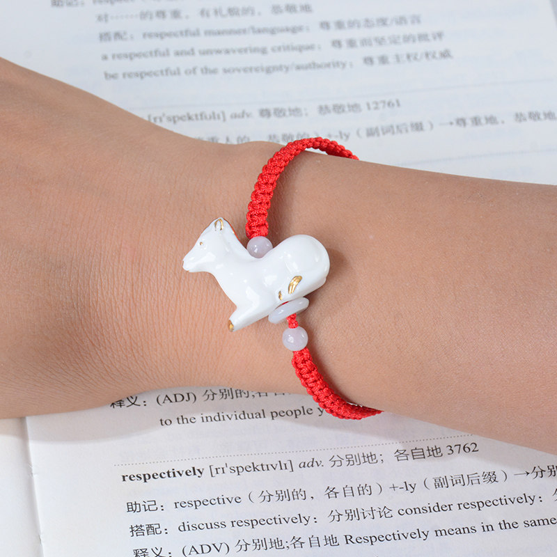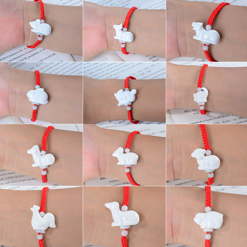 陶瓷白色描金老鼠牛虎兔龙蛇马羊猴子鸡狗猪情人节结婚Y手链小礼