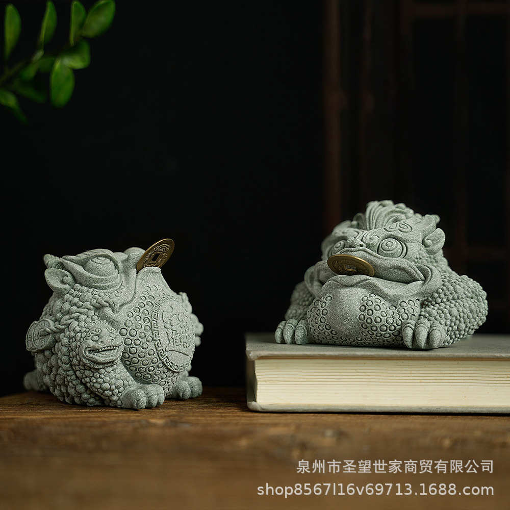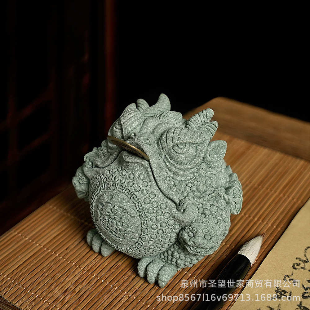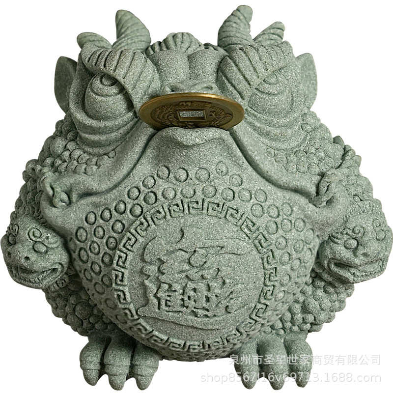 三摆件店铺足金摆件开业砂石蟾造景新中式桌面礼品青鱼缸宠乔迁茶