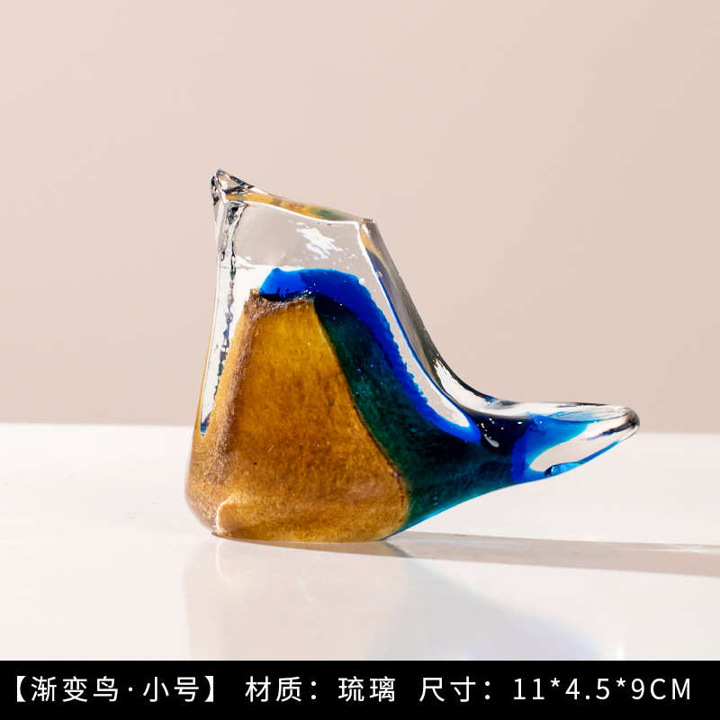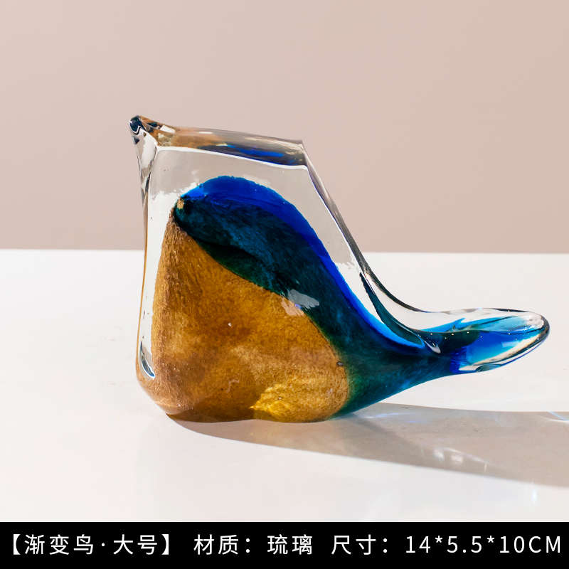 高档艺术琉璃鸟摆件现代简约轻奢样板房书房办公抽象装饰工艺品