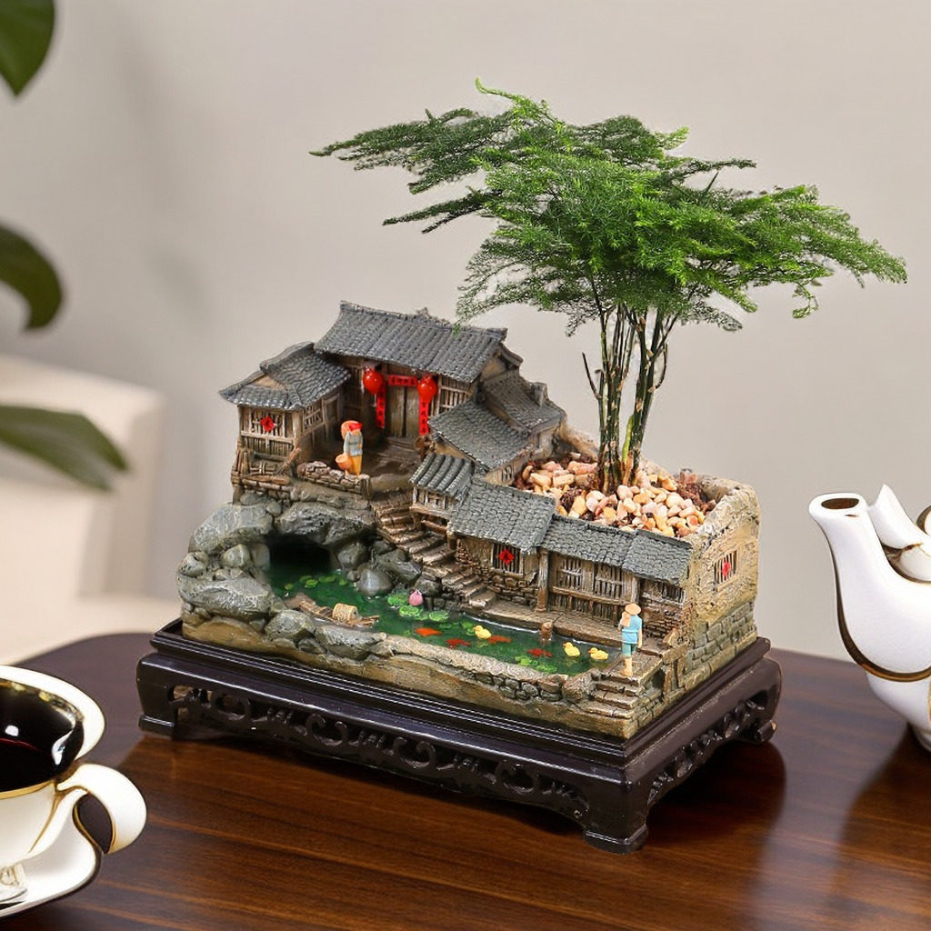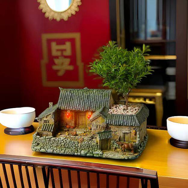 复古怀旧摆件建筑农家小院老房子模型客厅装饰桌面盆栽微景观造景