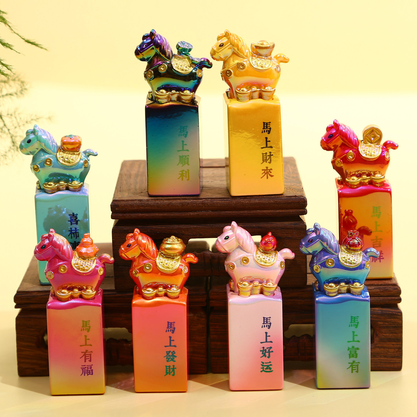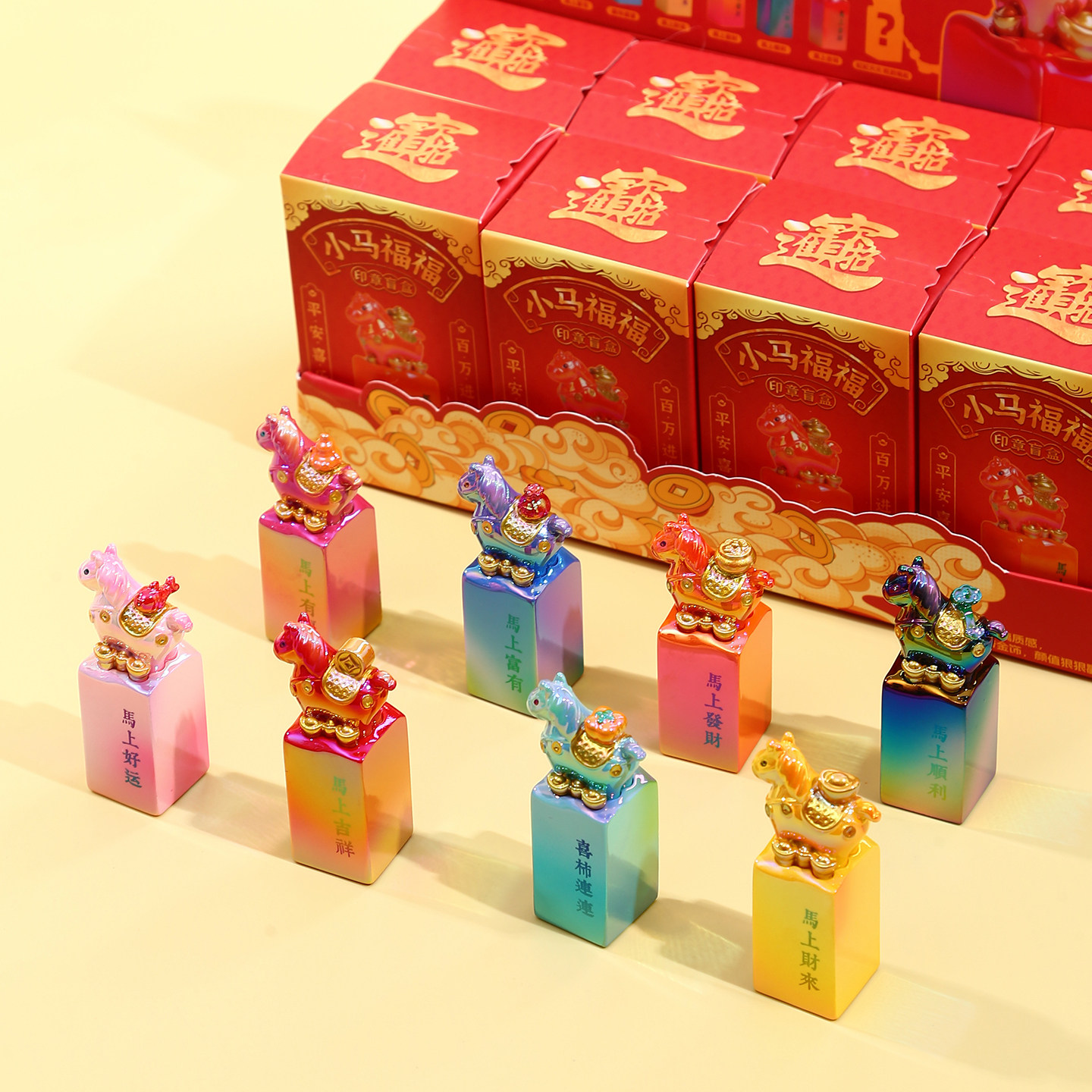 洛阳文创纪念品唐三彩小马印章盲盒桌面摆件特色特产马年伴手礼物