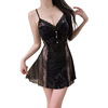 DZ瑰若性感丝绒睡衣纯欲透视网纱激情深V加胸垫睡裙外袍套装C5928