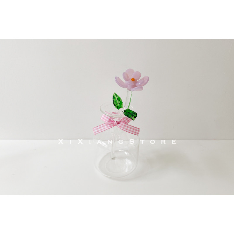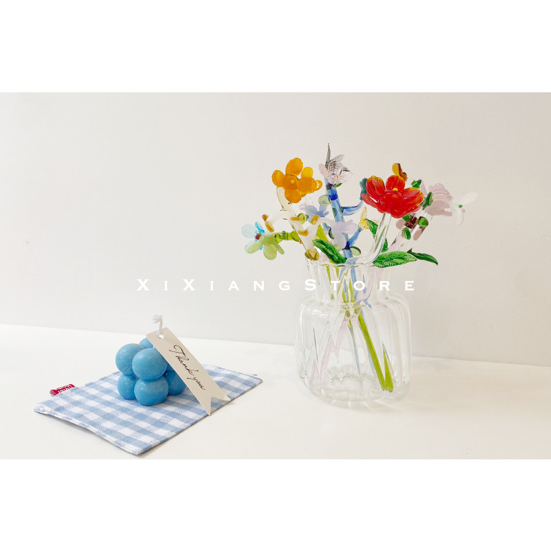 「西巷」单头手工玻璃小花琉璃花束日本出口仿真清新摆件装饰可爱