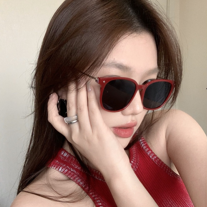 2025新款安其拉红方形圆脸显瘦墨镜女欧美辣妹高级感复古太阳眼镜