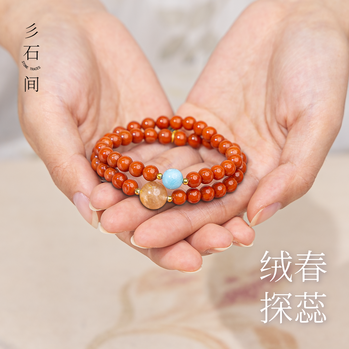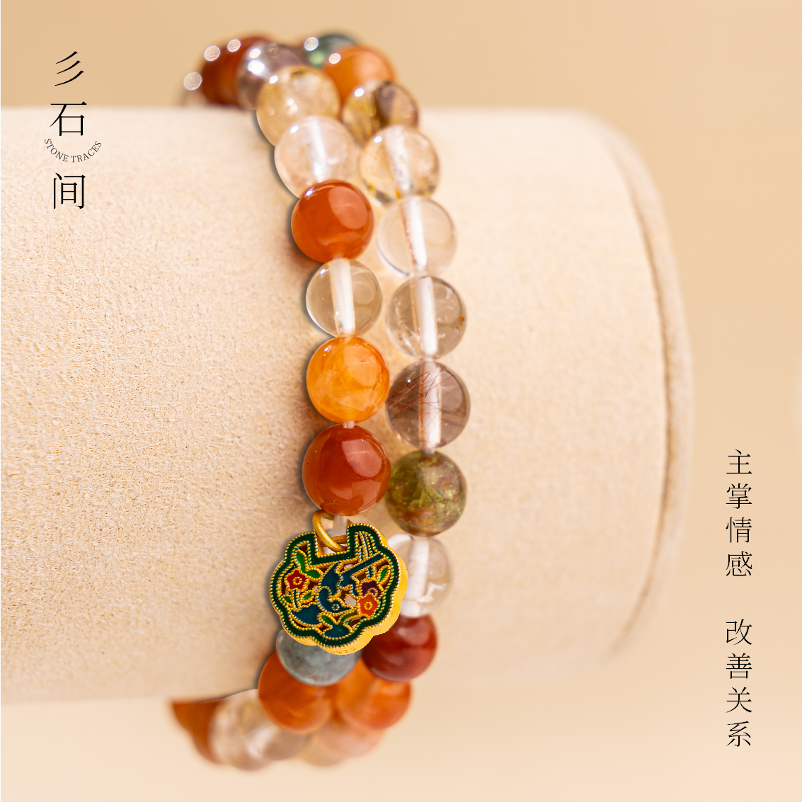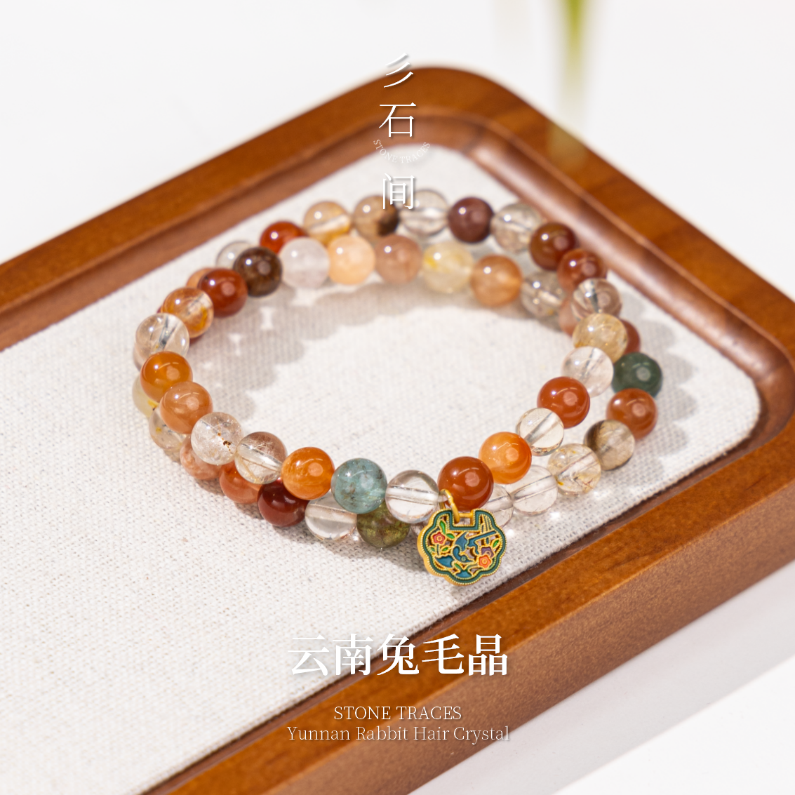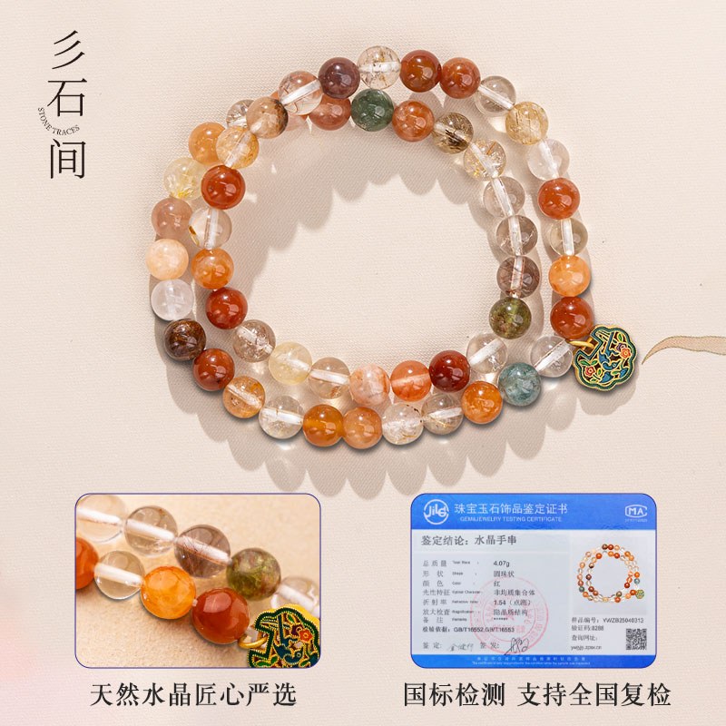天然彩兔毛水晶手链女款双圈新中式饰品礼物送女友闺蜜礼物多宝