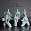 青瓷功夫打太极拳人物6式陶瓷可爱家居玄关客厅书房装饰礼品摆件