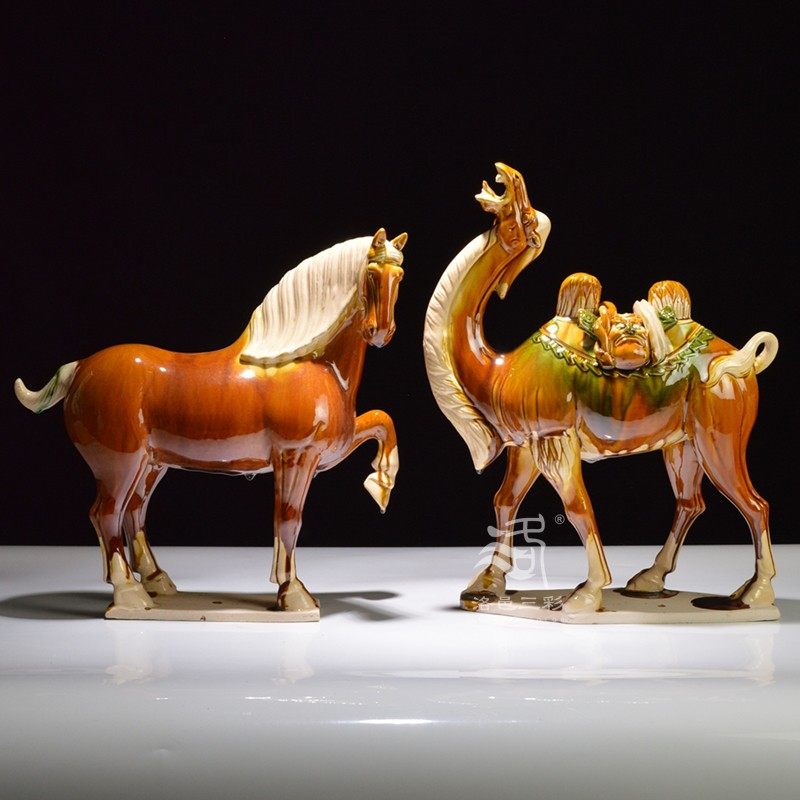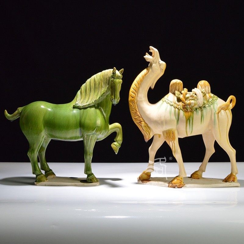 洛邑三彩仿古舞马大师纯手工陶瓷艺术收藏品家居装饰中式复古摆件
