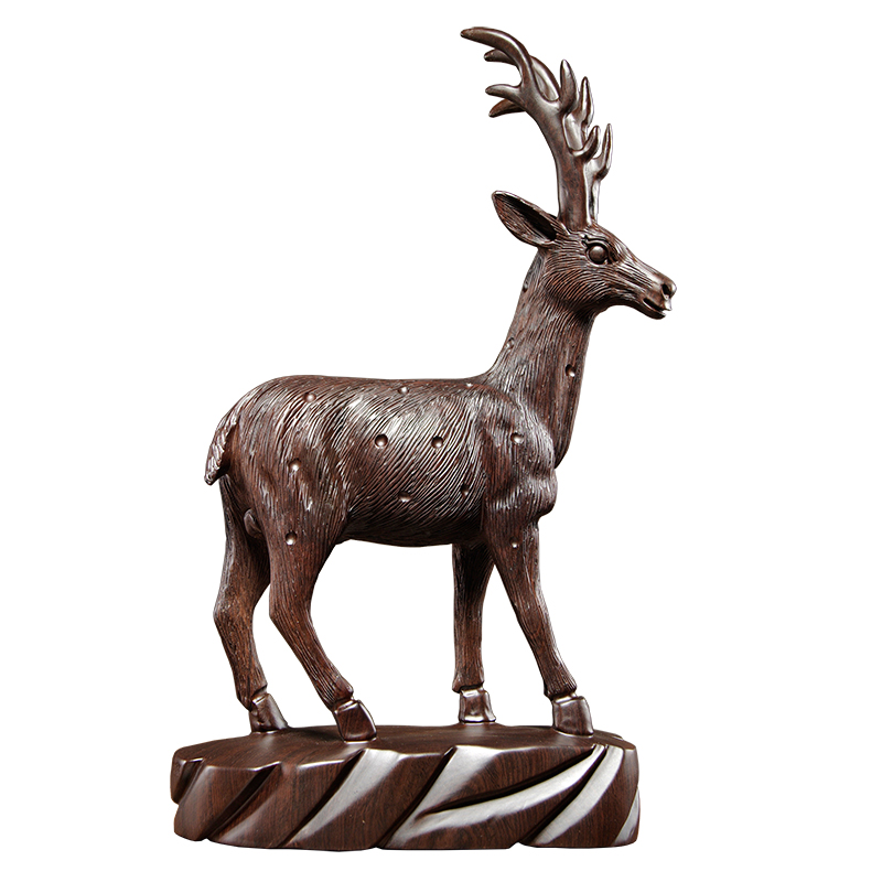 黑檀木雕梅花鹿摆件红木家居客厅电视柜酒柜玄关办公室装饰工艺品