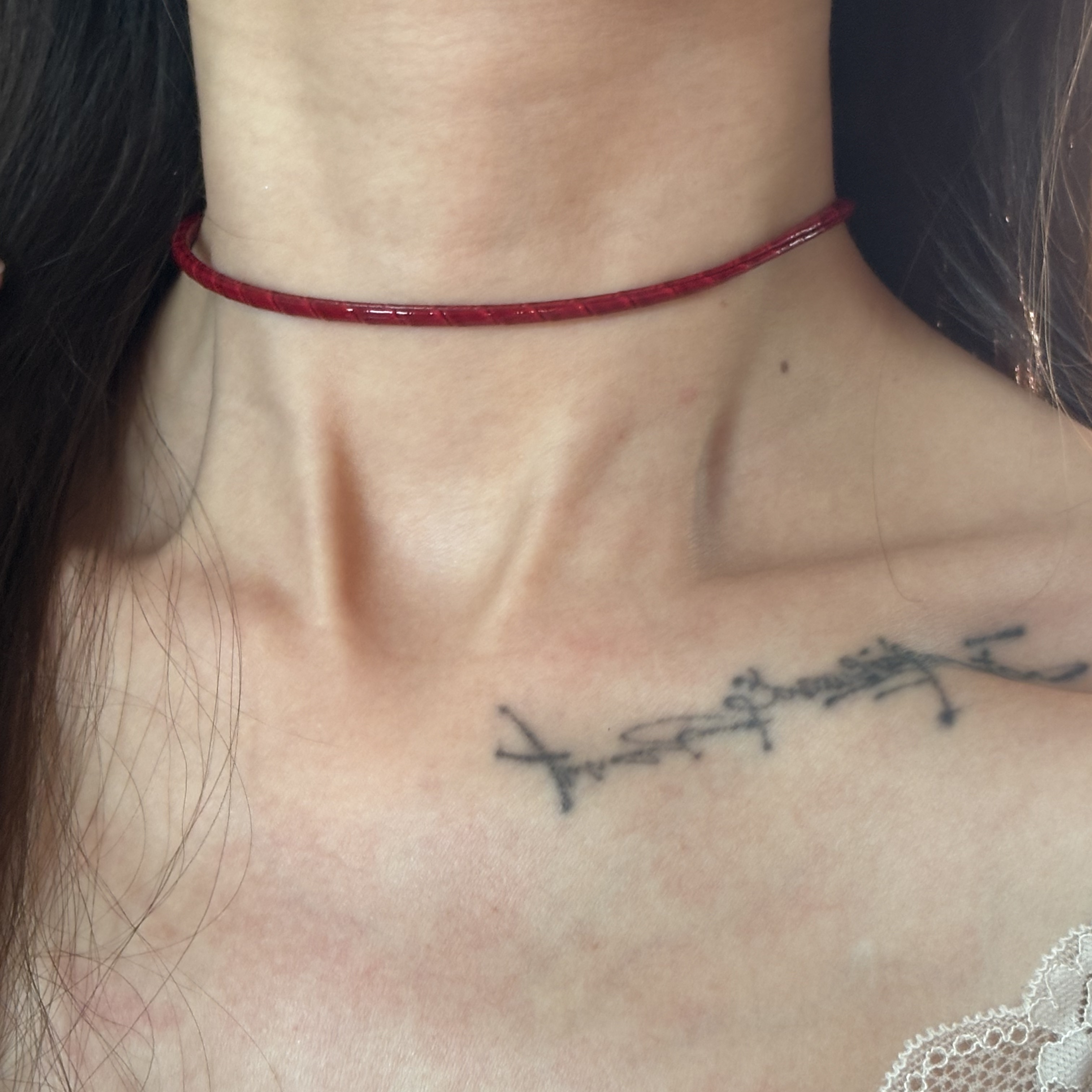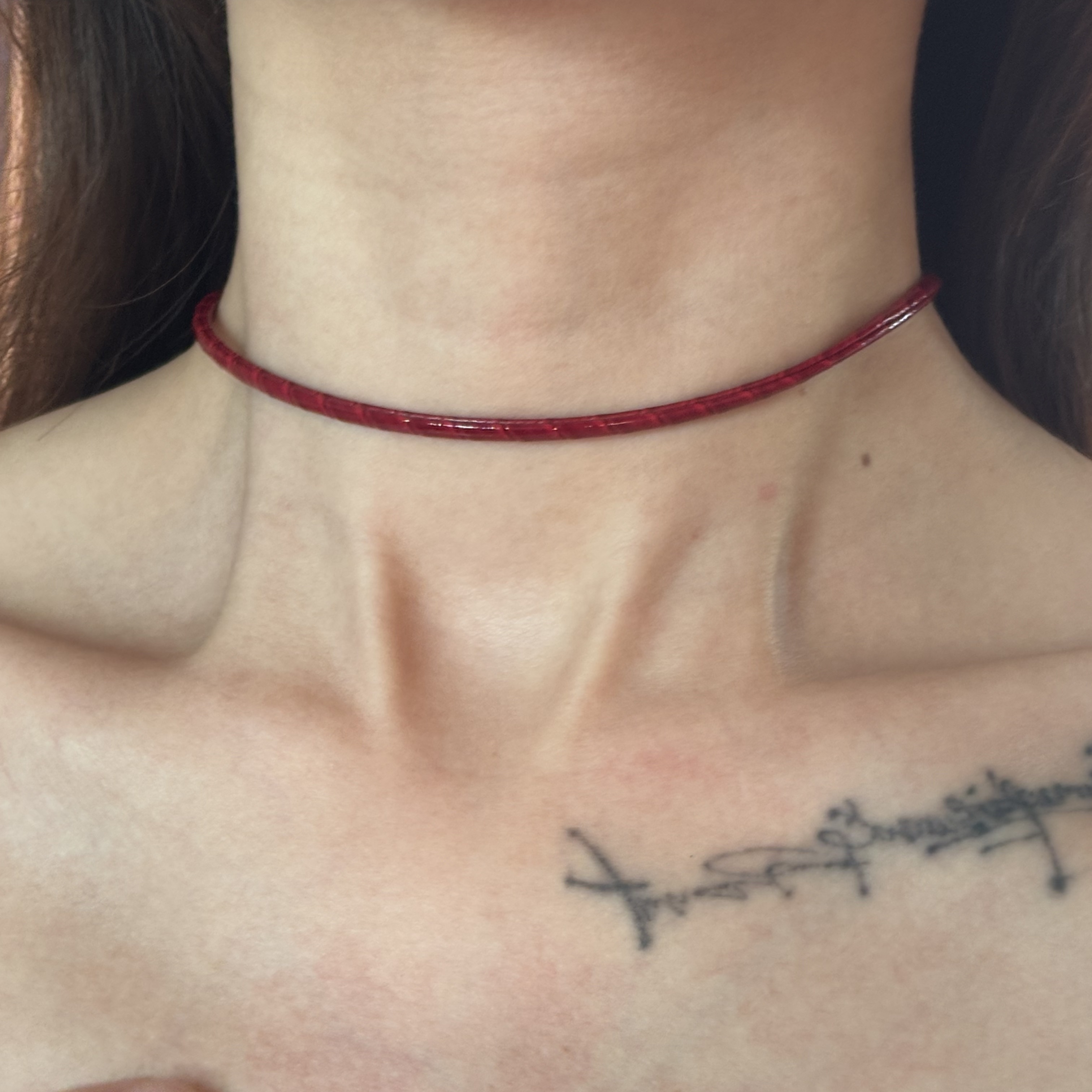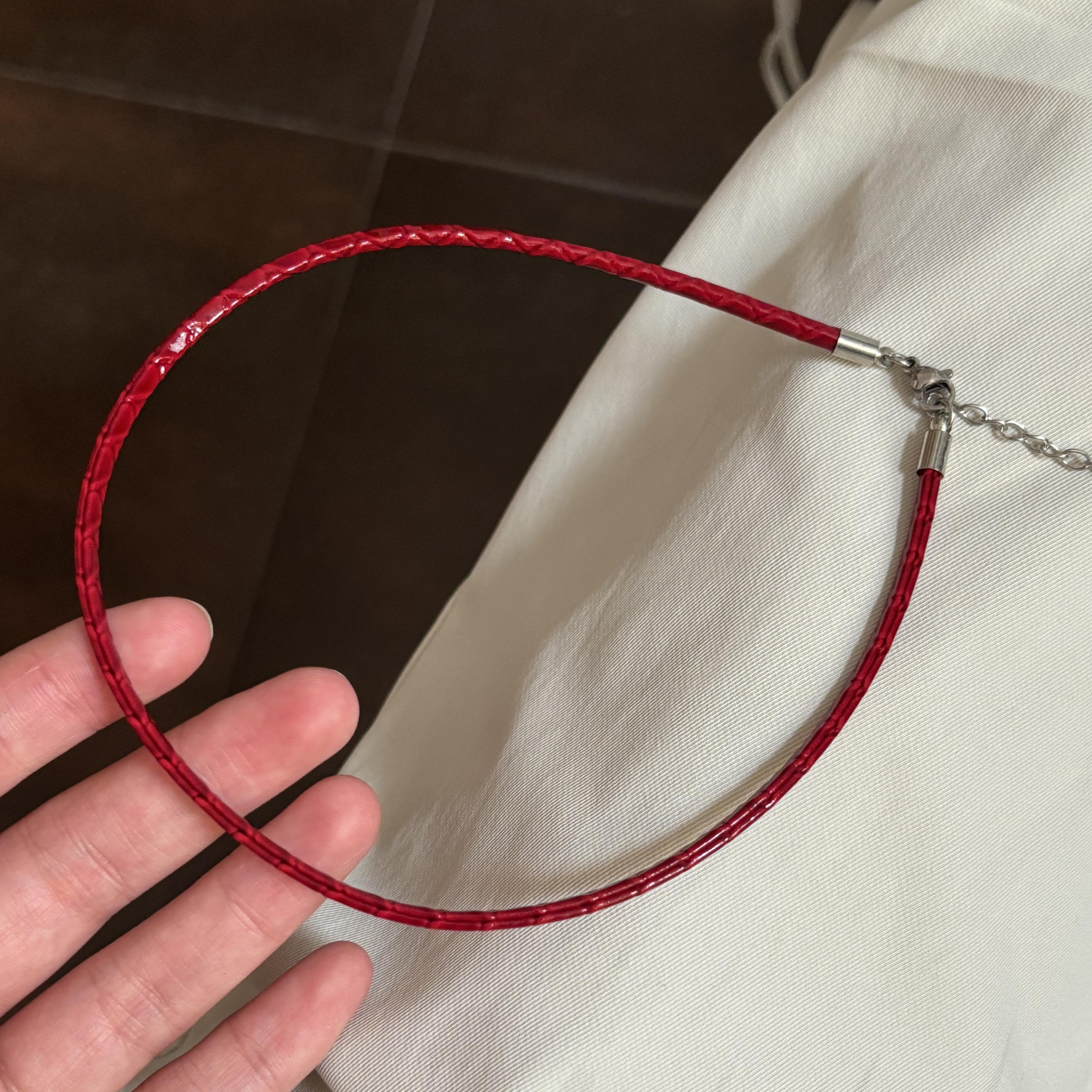 [楼哈哈]原创红色显白漆面蛇纹choker细颈带皮质项圈短款手工项链