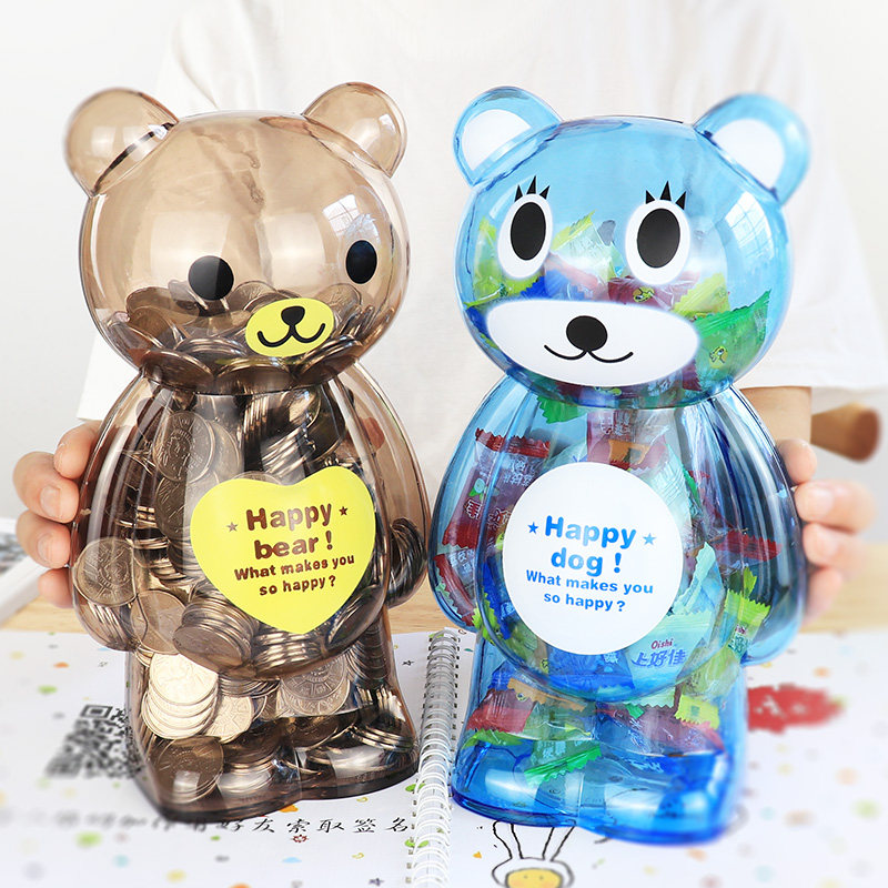 卡通小熊存钱罐 儿童男女生可爱网红透明迷你硬币储蓄罐 生日礼物