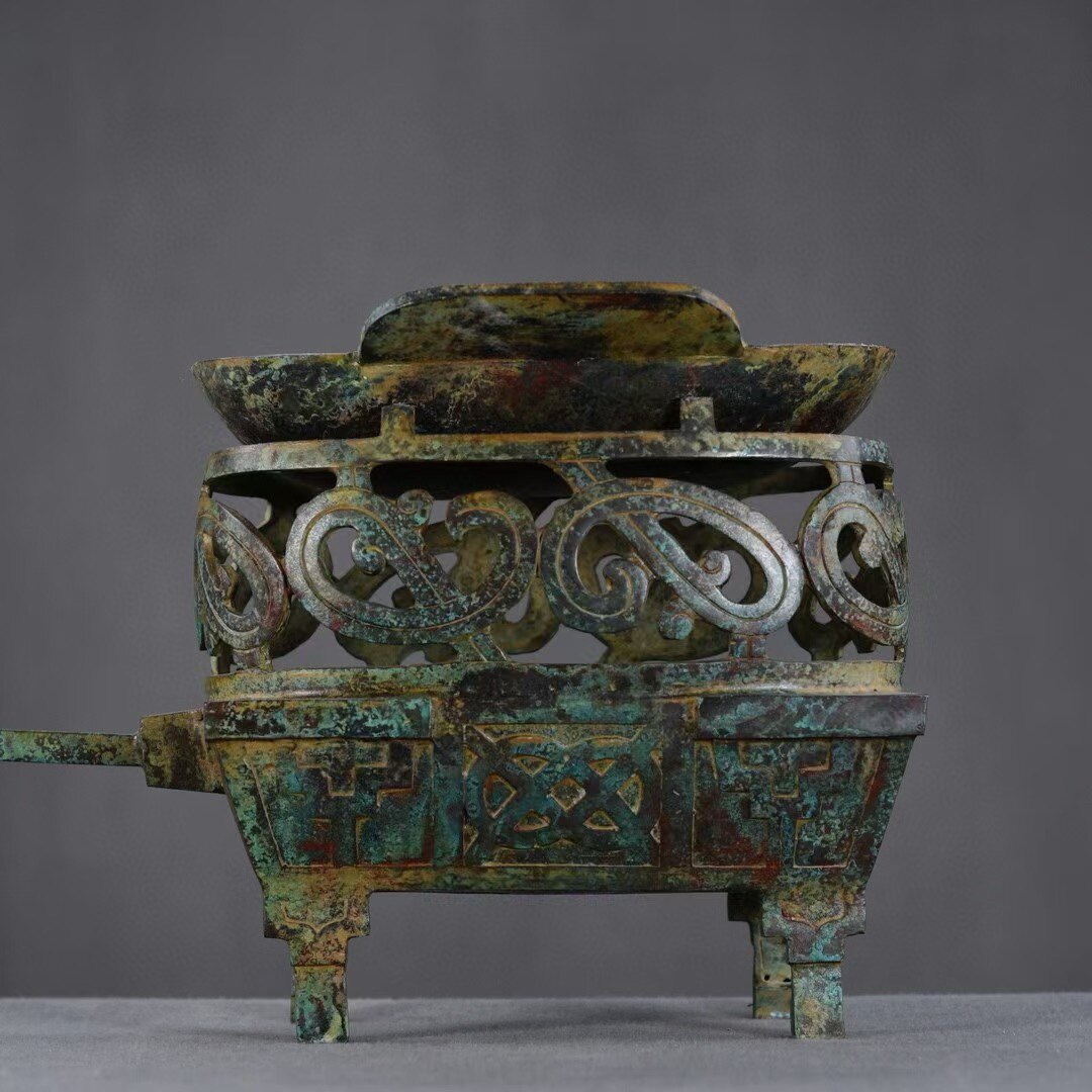 古青铜器四神温酒铜炉西汉晚期出土于山西太原尖草坪红斑绿锈