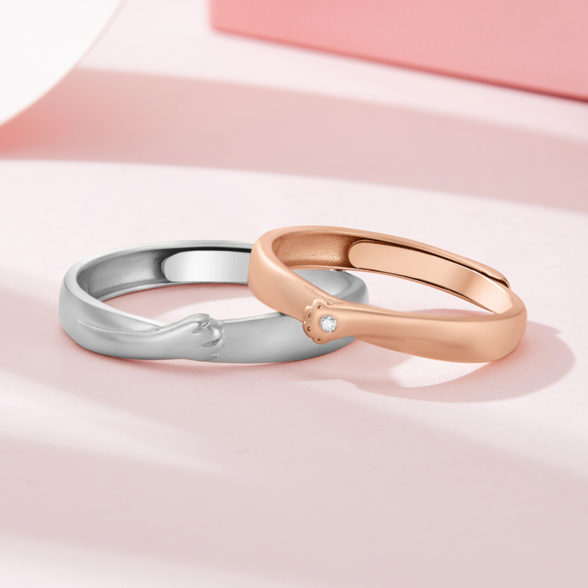 softdora/索缇朵猫爪钻石情侣对戒925银简约戒指男女款开口送礼