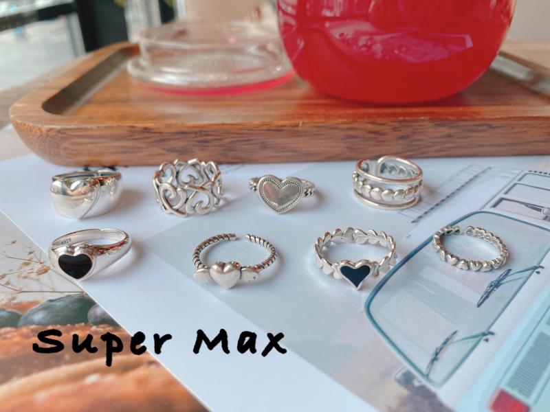 韩国进口小众925纯银宽叠戴爱心戒指极简复古冷淡风ins网红食指戒