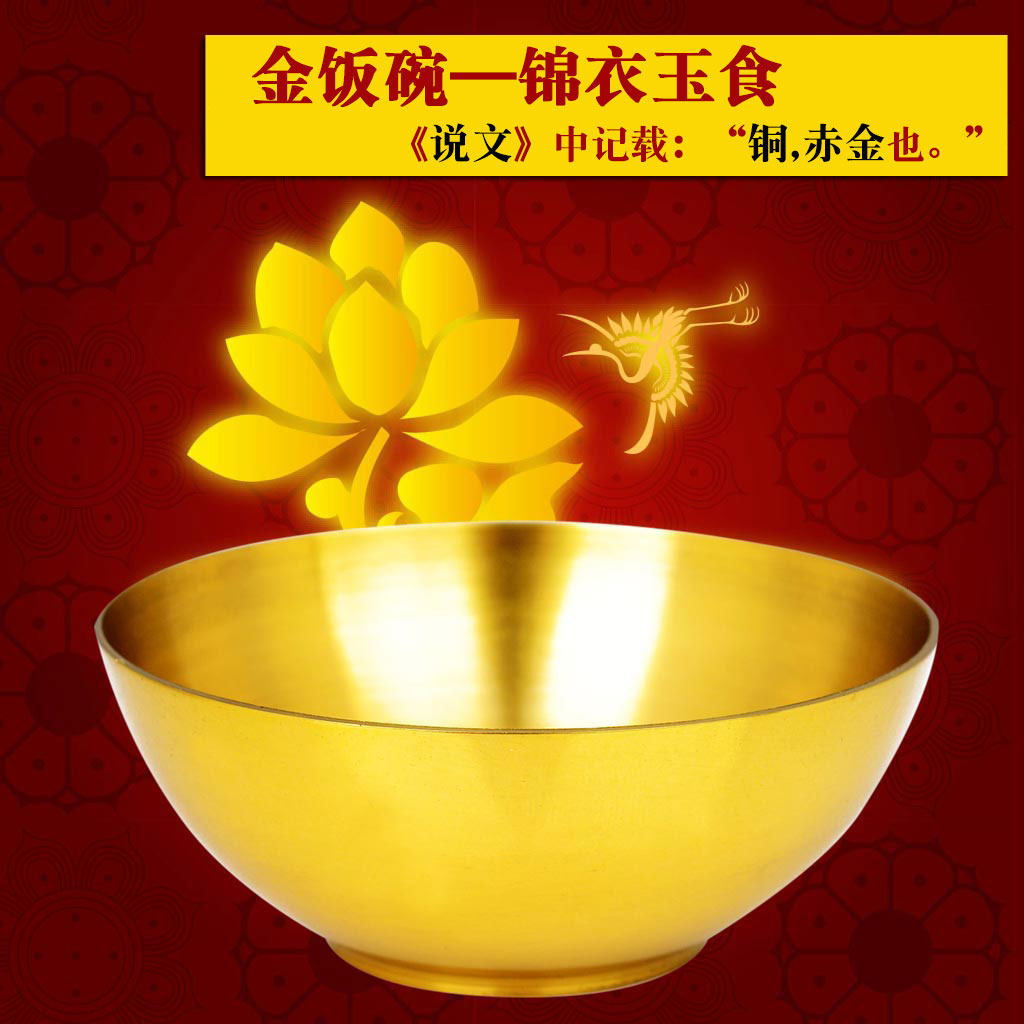 铜碗筷三件套摆件加厚大小碗家用金饭碗铜钵铜勺子家居客厅摆件