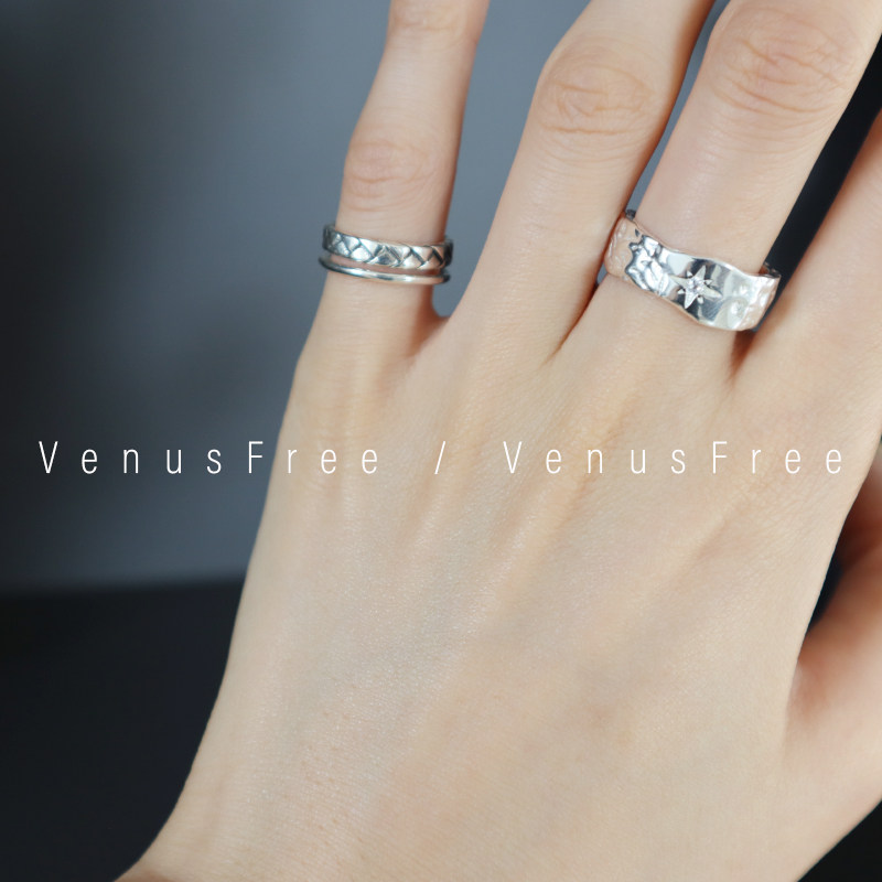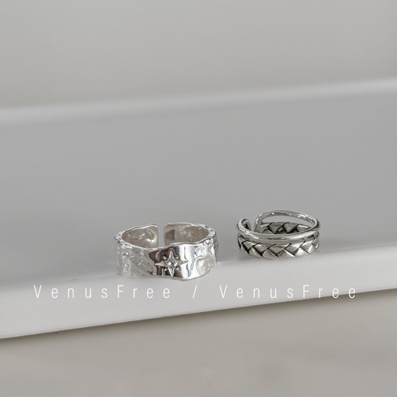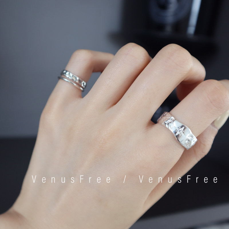 韩国925纯银加宽异形闪钻星星纹理戒指双层烧银尾戒简约日常搭配