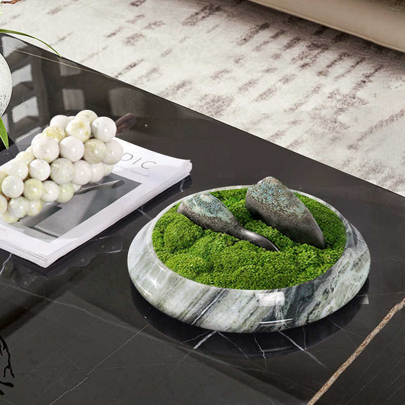 现代天然大理石盆栽绿植花盆花器中式售楼部茶几青苔植物花盆摆件