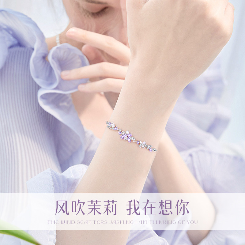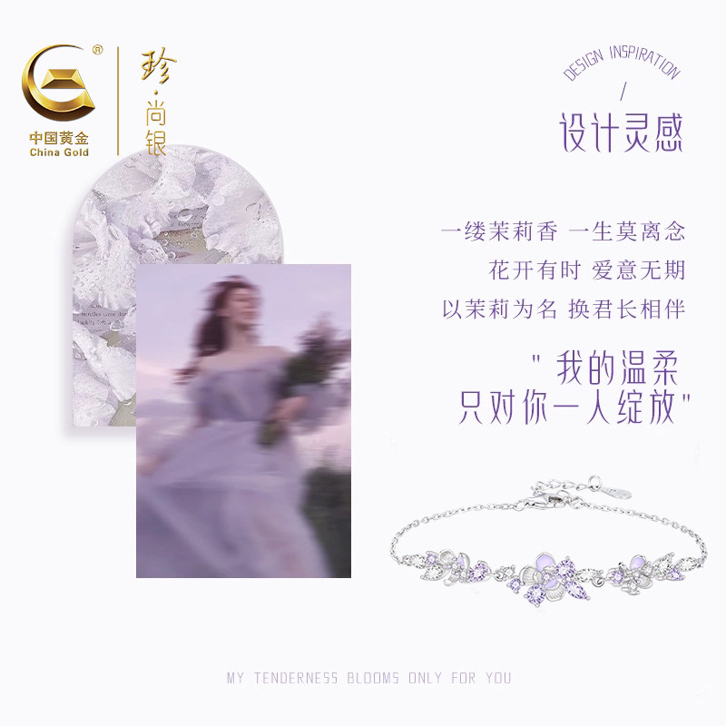 中国黄金珍尚银茉莉花纯银手链女生2026新爆款新年礼物送女友S925