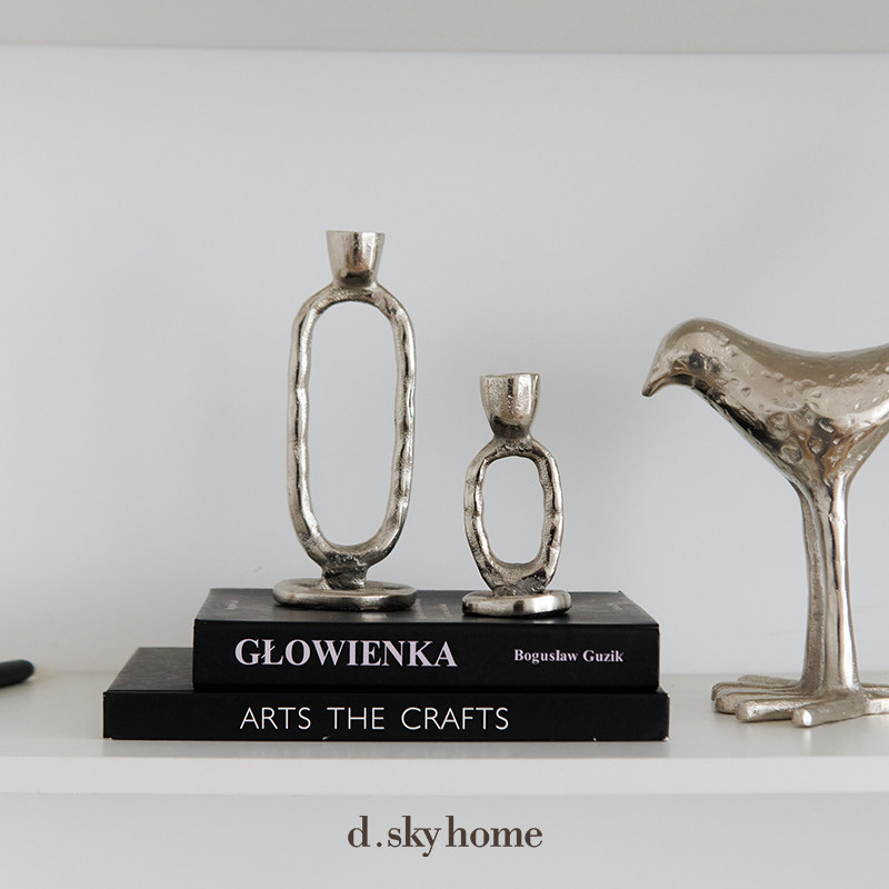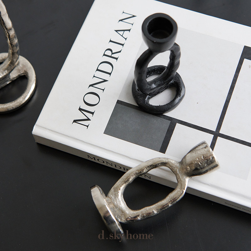 迪斯凯 印度进口 北欧简约现代创意几何黑色银色铝制烛台餐桌摆件