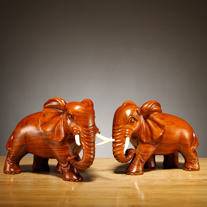 实木质雕刻一对大象摆件花梨木象家居客厅摆设电视柜装饰工艺礼品