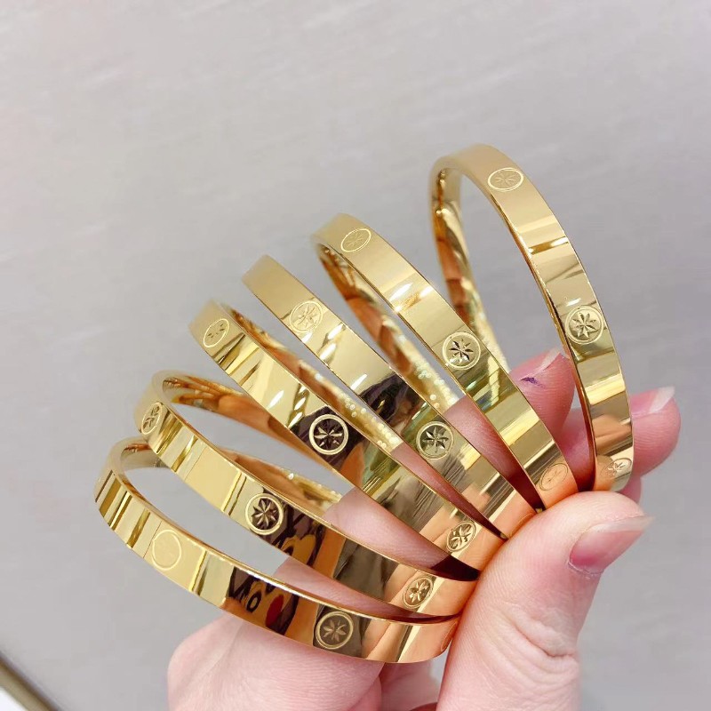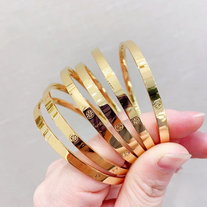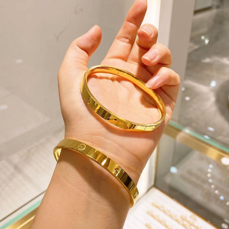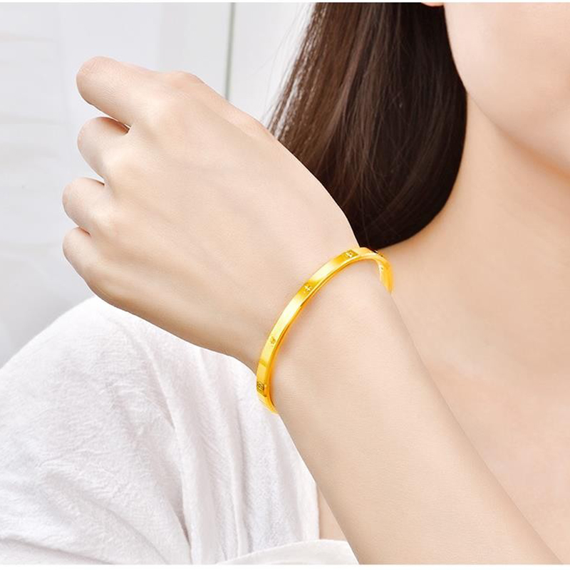 5D硬金黄金亮面车花手镯999足金女士时尚百搭金手镯正品新款手环