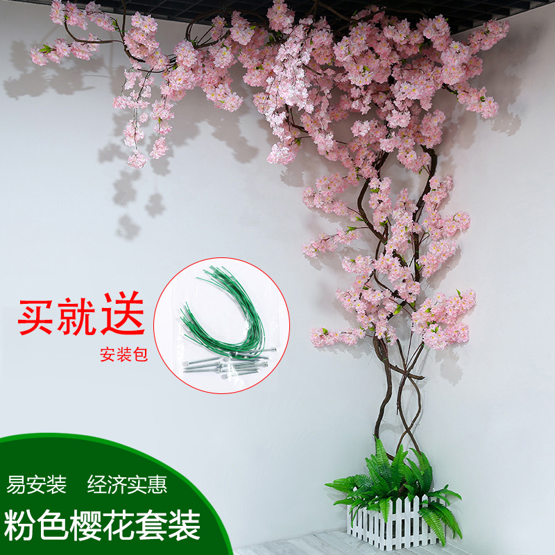 假树装饰仿真树室内榕树叶花树假藤蔓墙上绿植物墙壁造景大型树藤