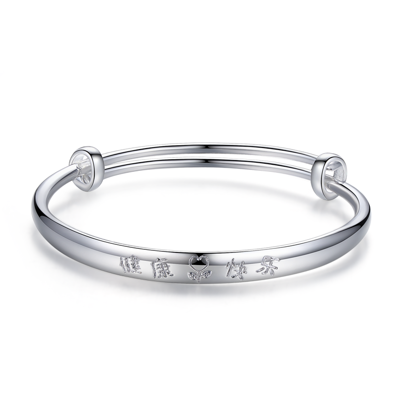 宝宝纯银镯子9999足银手镯健康快乐成长儿童小孩子新生婴男女