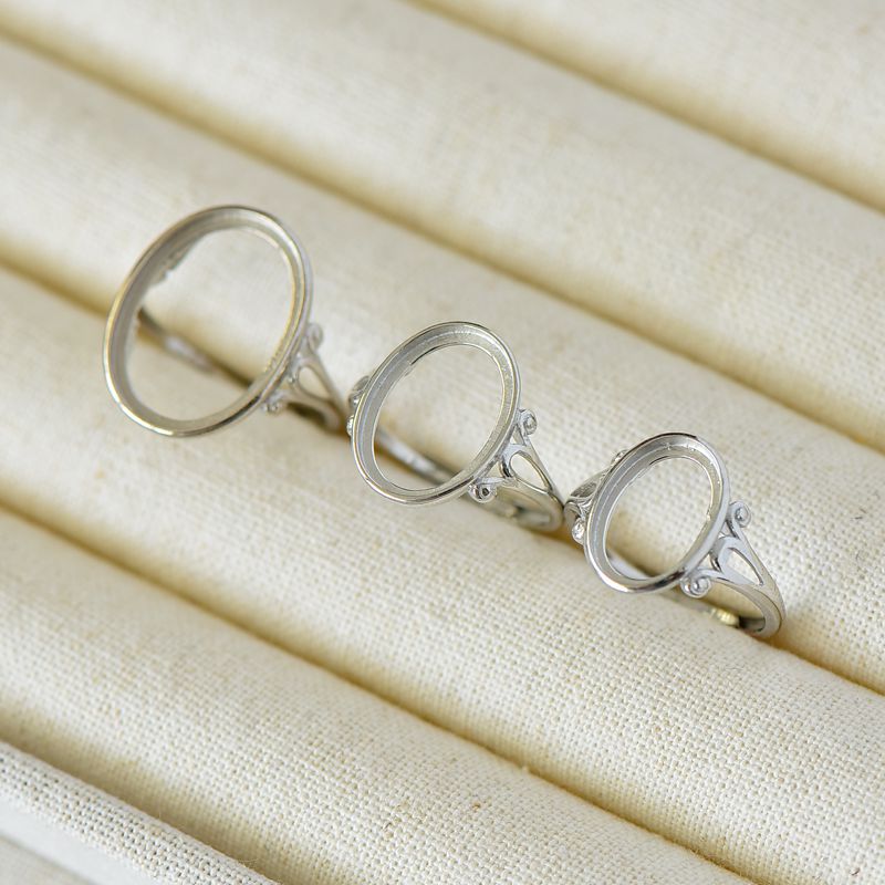 S925纯银戒指空托男女款DIY蜜蜡松石玉石镶嵌9*1311*1513*1814*19