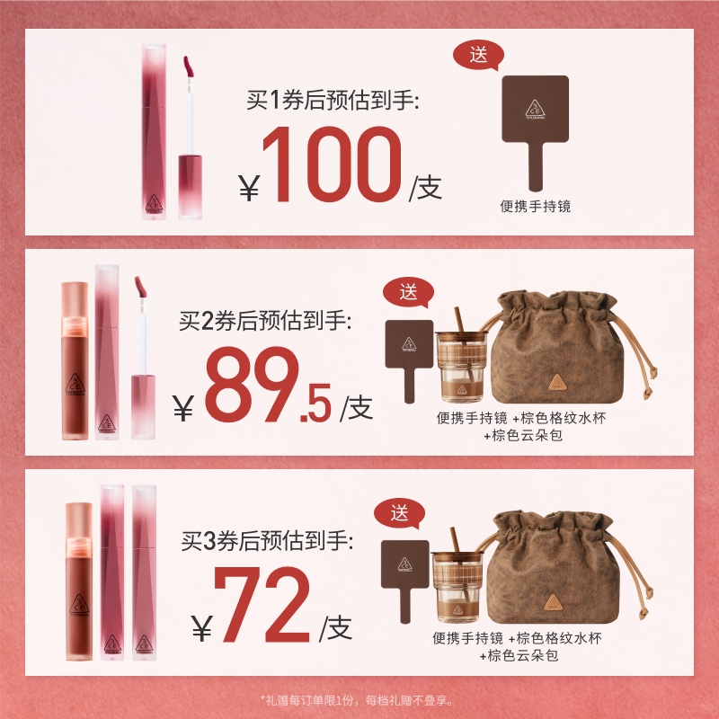 【双11狂欢】3CE水雾唇露唇釉口红持久彩妆laydown乌龙奶茶女