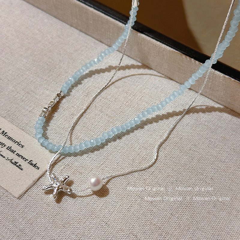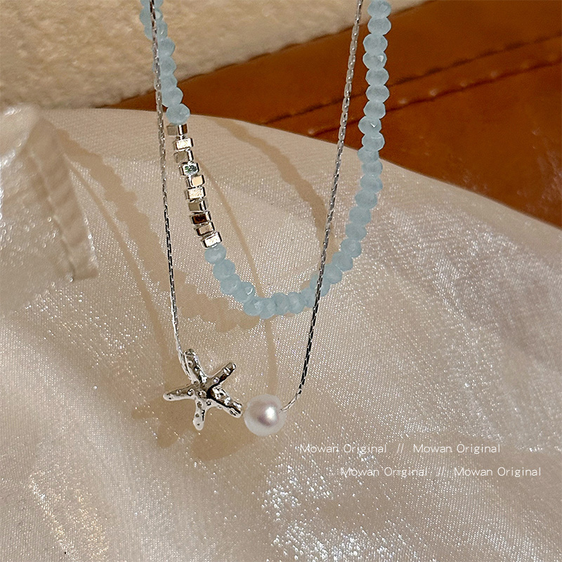 海星仿珍珠碎银子叠戴项链高级感轻奢小众锁骨链配饰品女颈链项圈