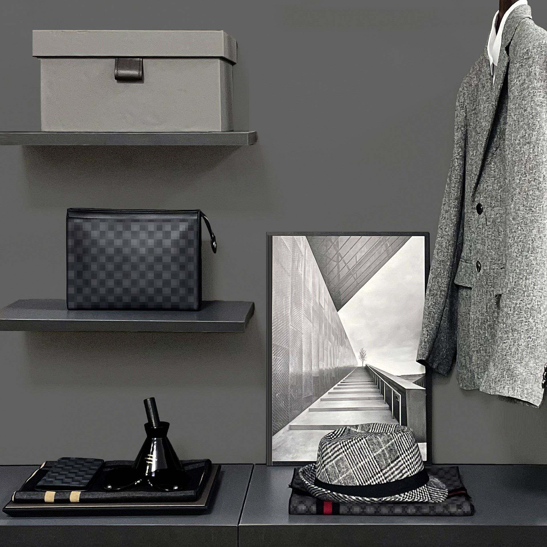 现代样板房男衣柜组套装合饰样ali-6691品摆件士软装托盘灰色板间