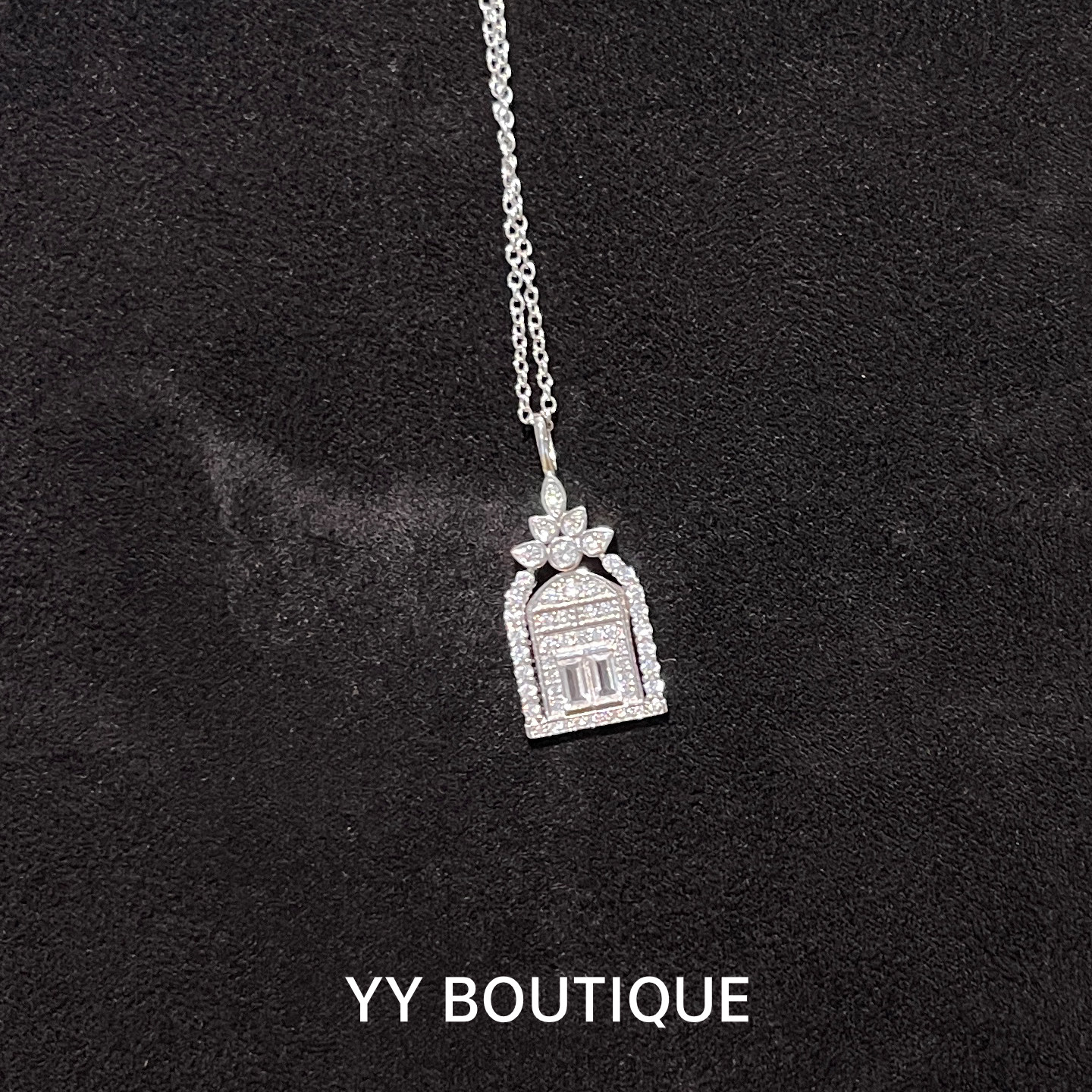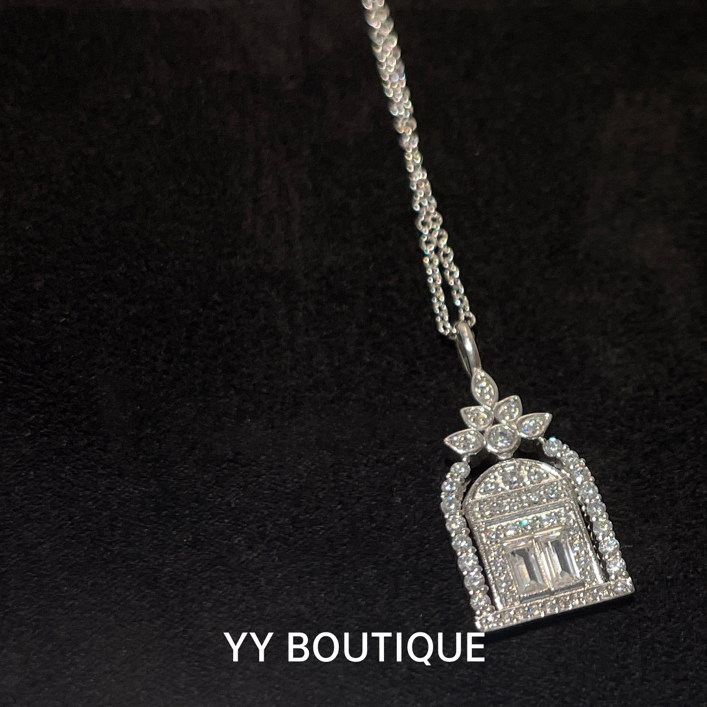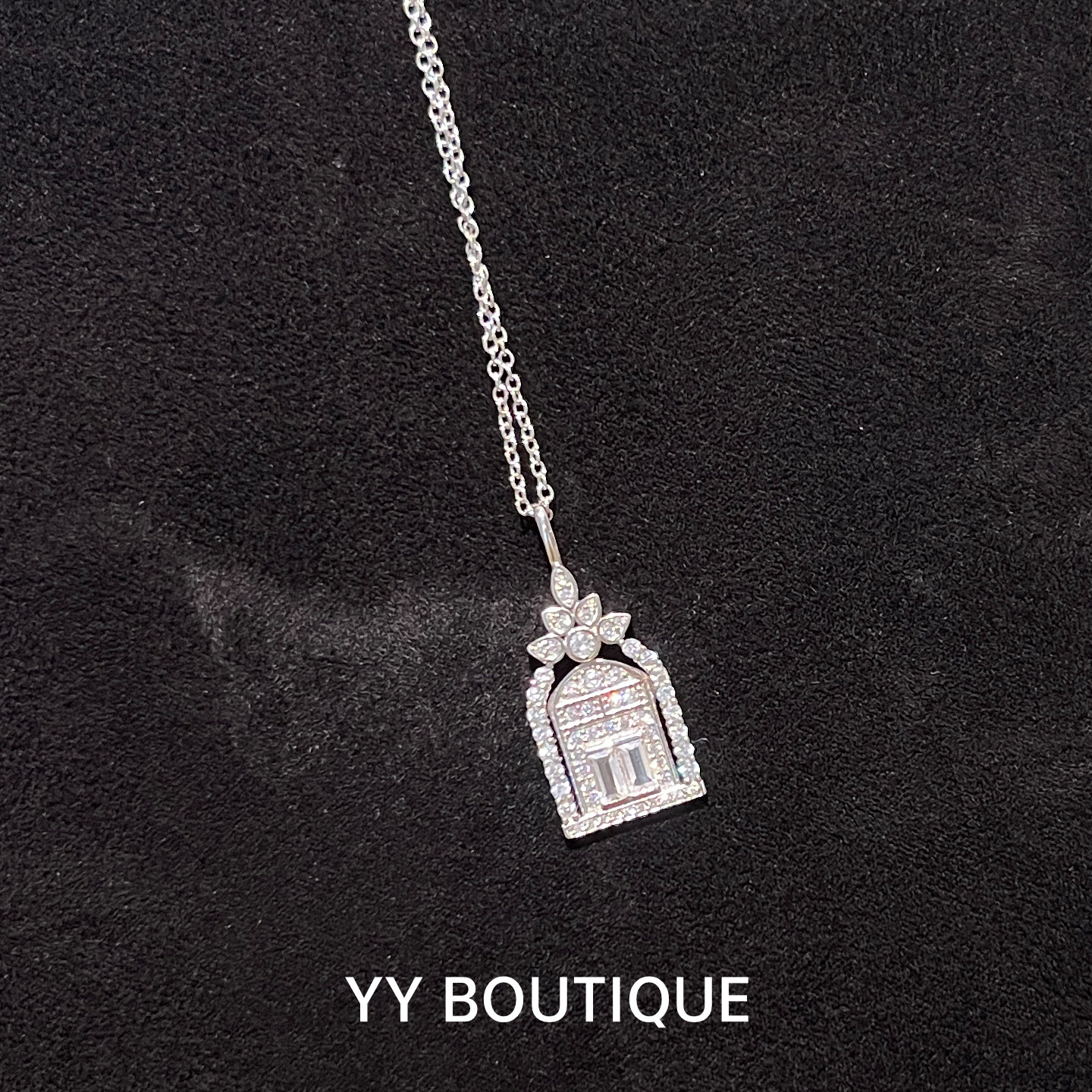 YYBOUTIQUE 幸福之门鸟笼项链纯银925时尚优雅满钻锁骨链轻奢小众