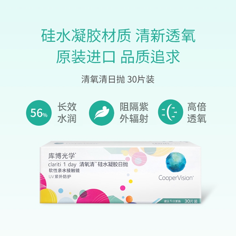 库博光学清氧清隐形眼镜硅水凝胶日抛30片盒装库博旗舰店官网正品