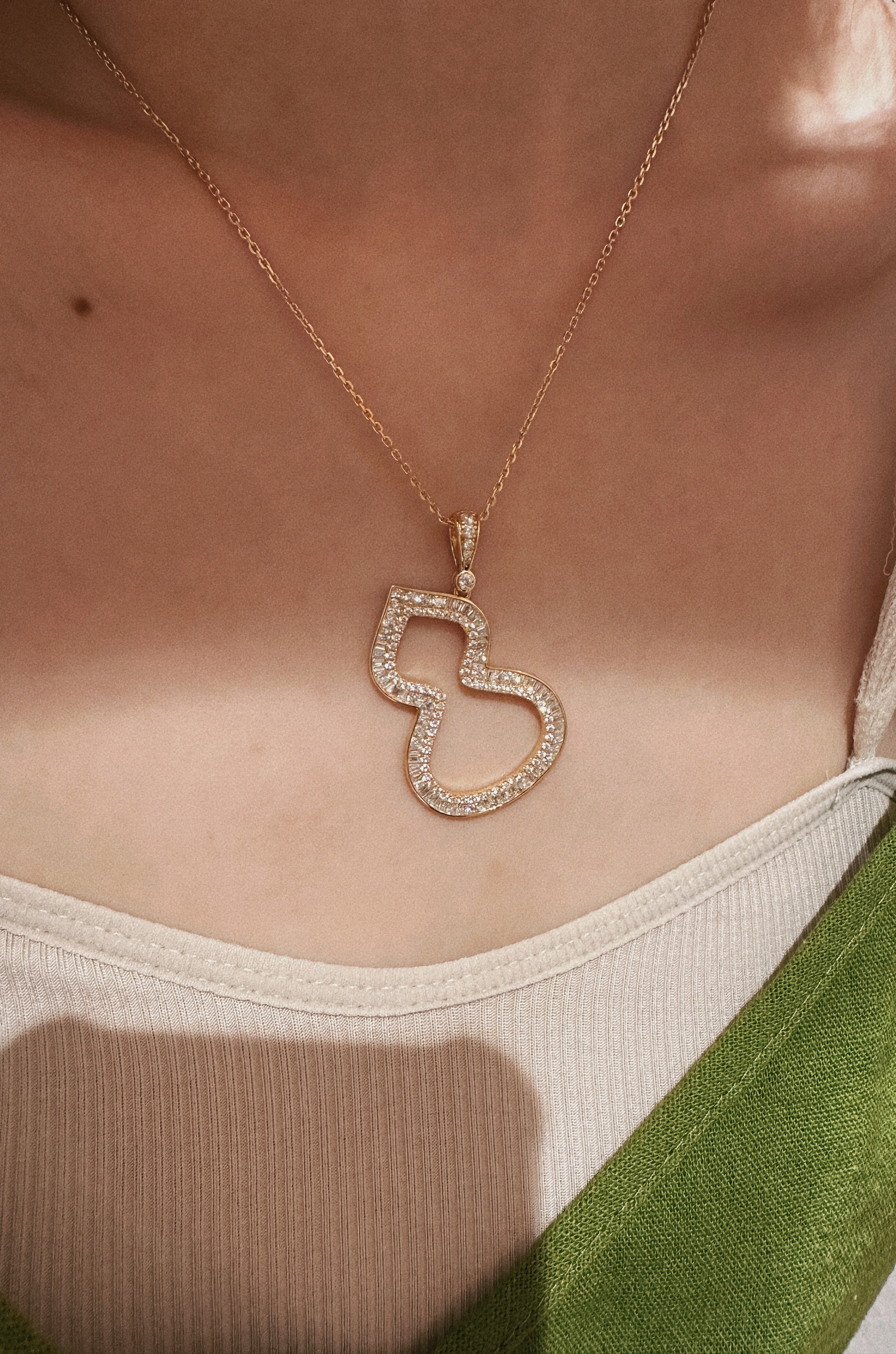 UMI家·轻珠宝/S925银镀金·大号满钻葫芦吊坠福禄排钻国风高级感