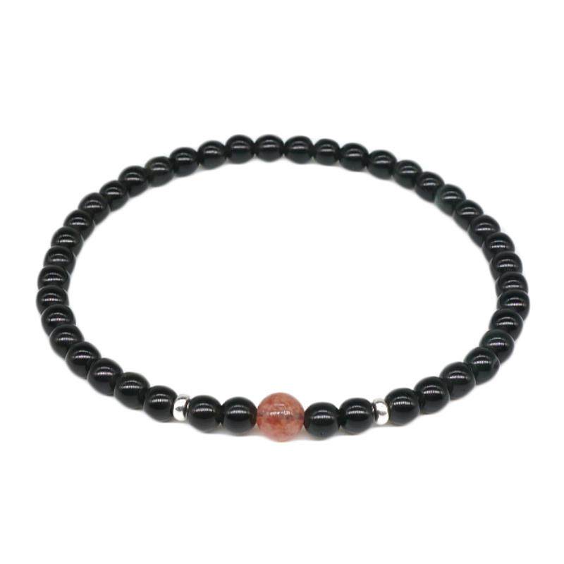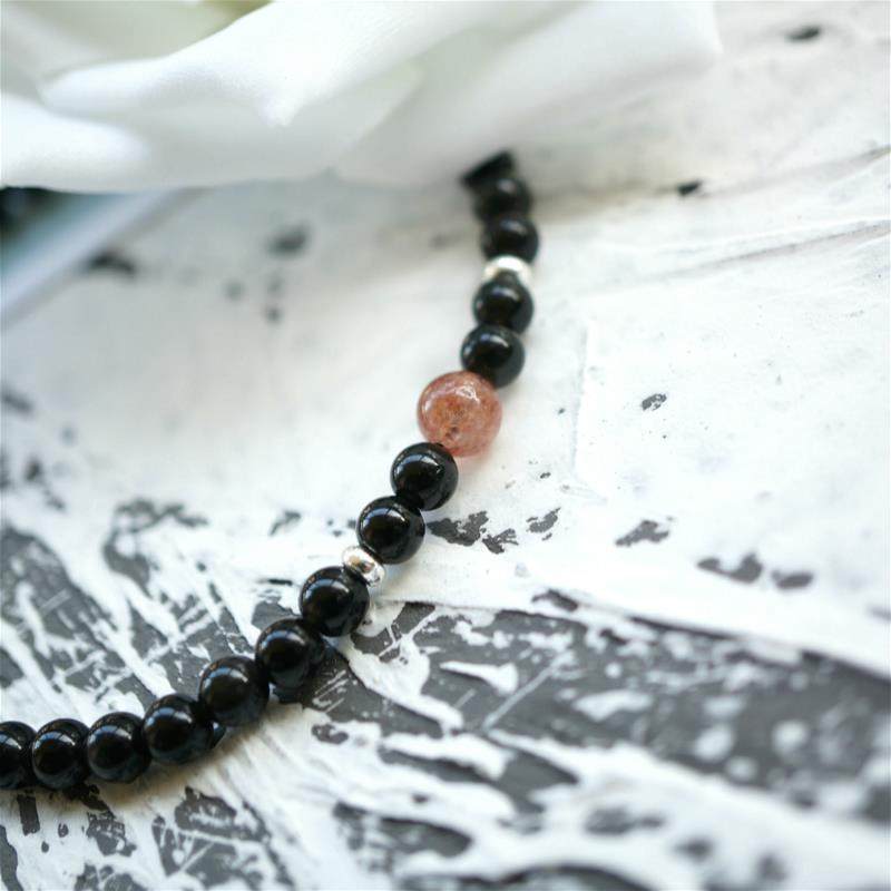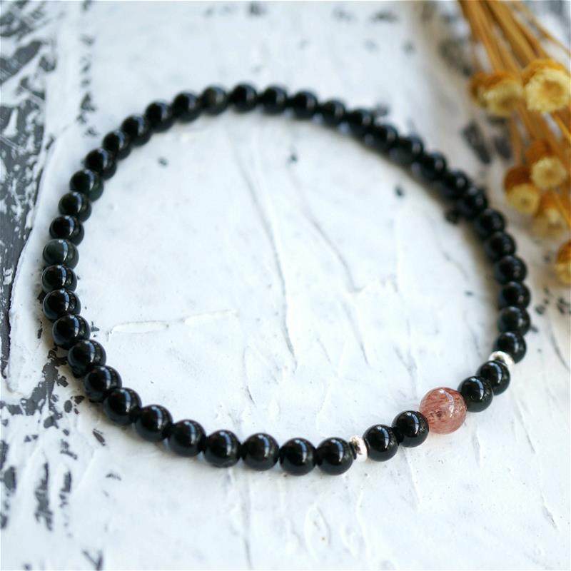黑曜石手链女细黑曜石手链小珠子黑手串黑石天然珠子简约彩虹眼