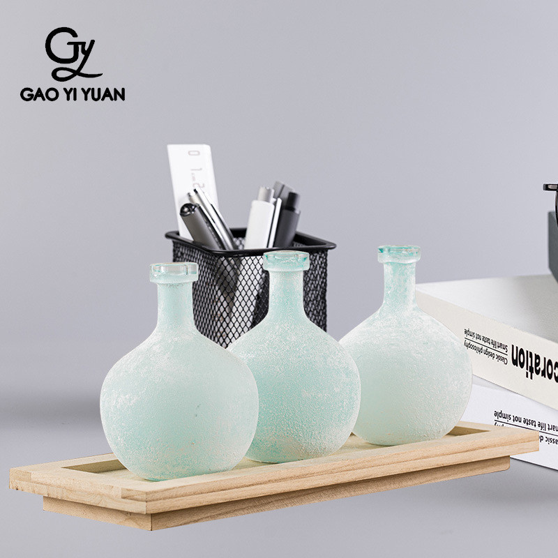 高亿美式乡村玻璃花瓶网红玻璃摆件样板间家居异型玻璃花瓶摆件