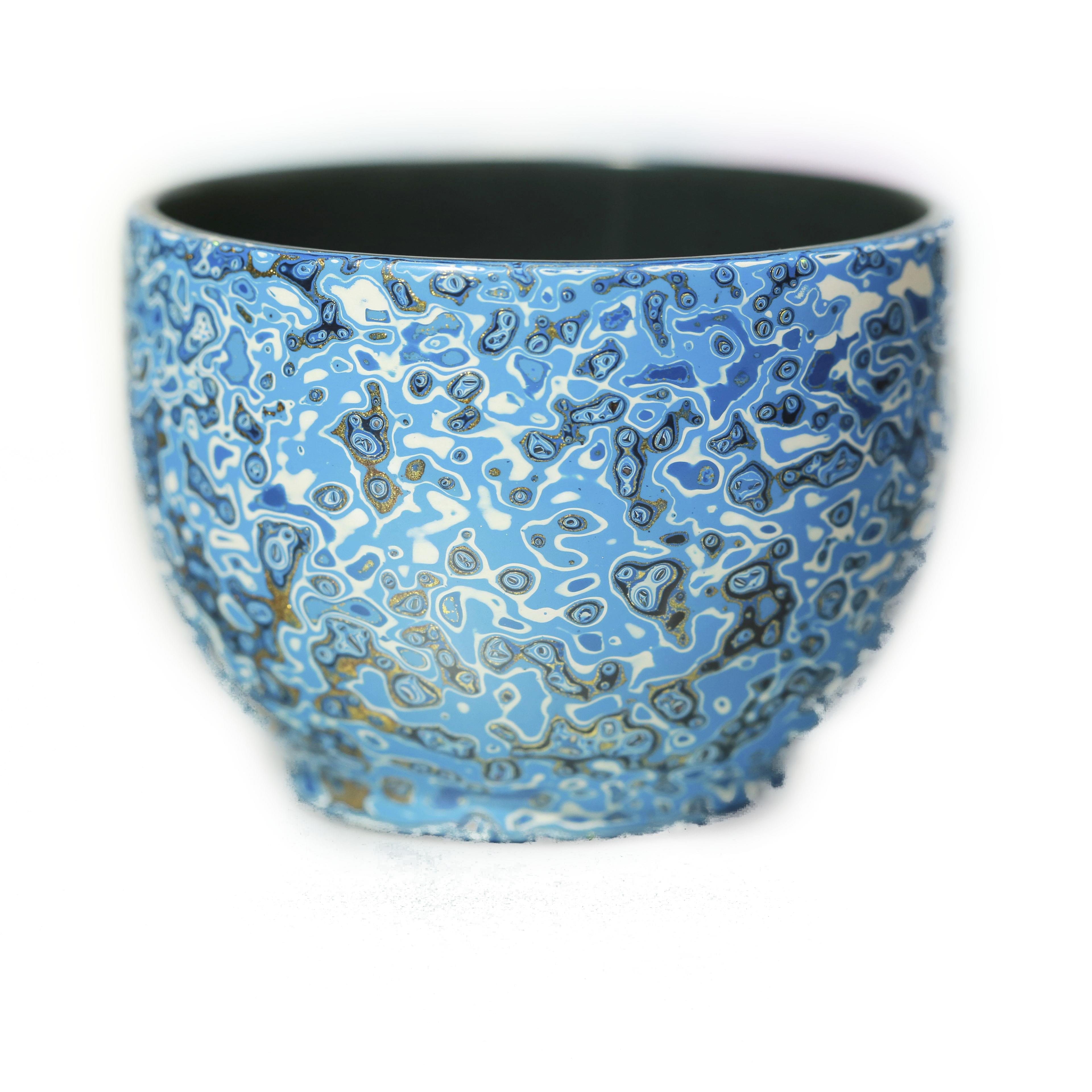 蒋宏利玉雕 和田玉青玉大漆素杯-蓝色 天然玉石 蒋宏利和田玉茶具