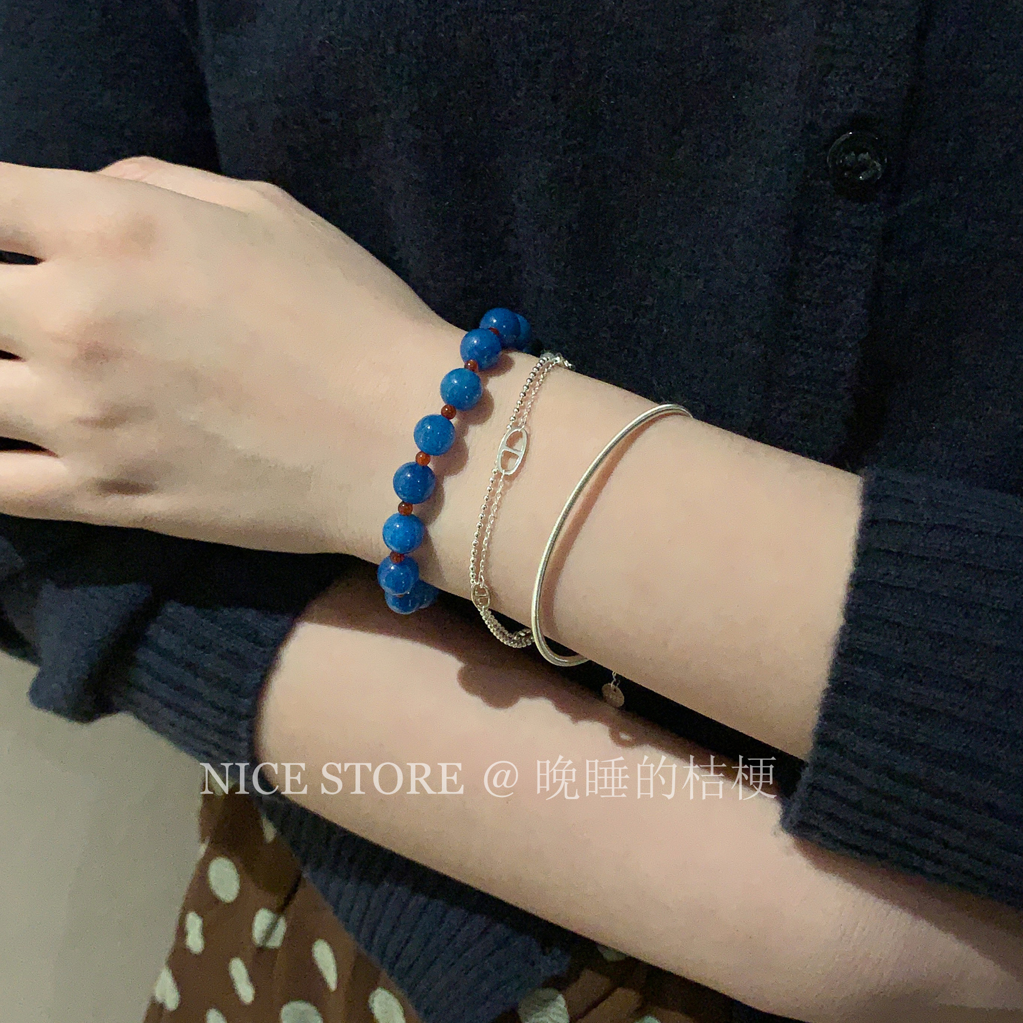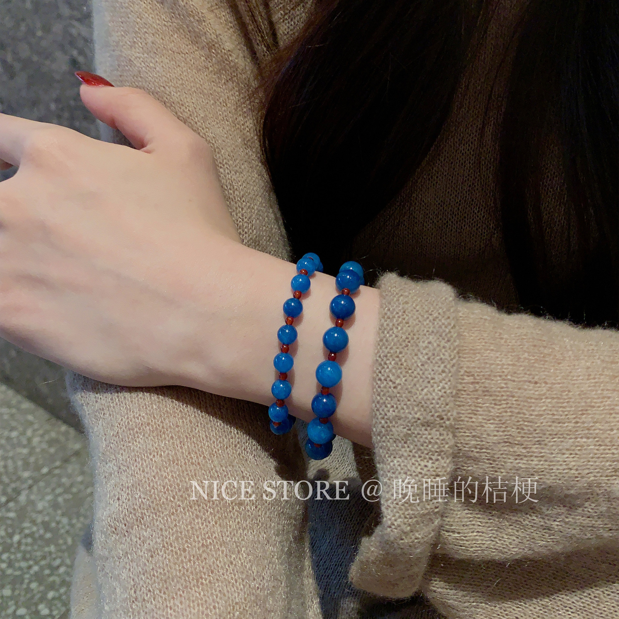 晚睡的桔梗「藏蓝」复古小众显白撞色天然石手串蓝色天新中式手饰