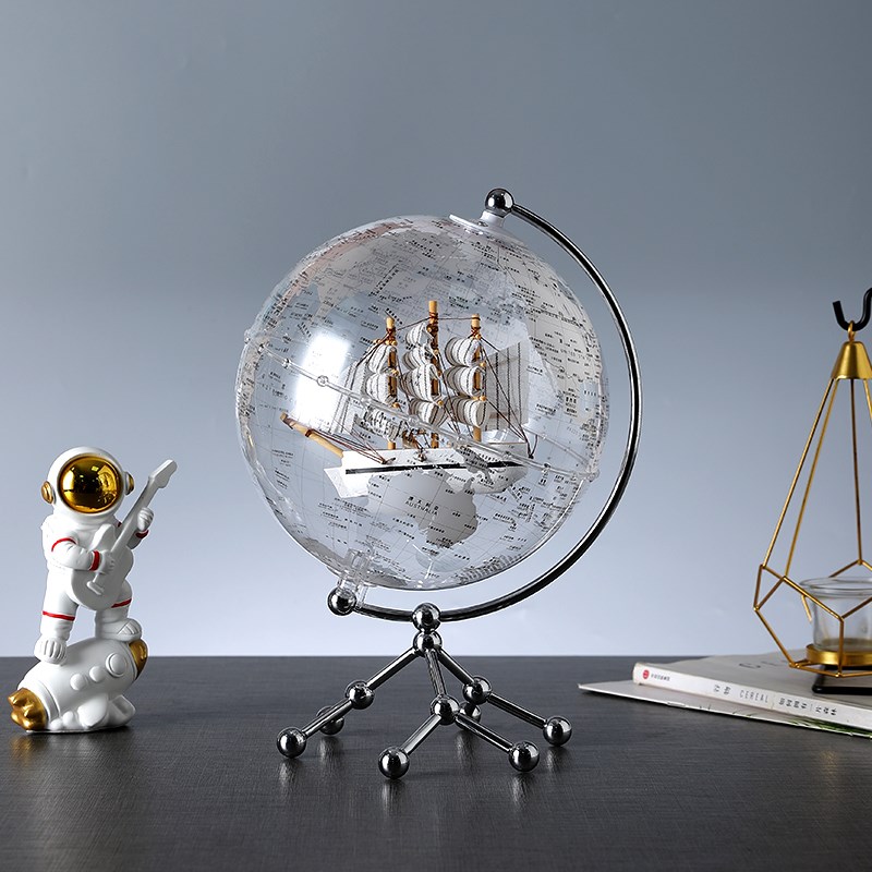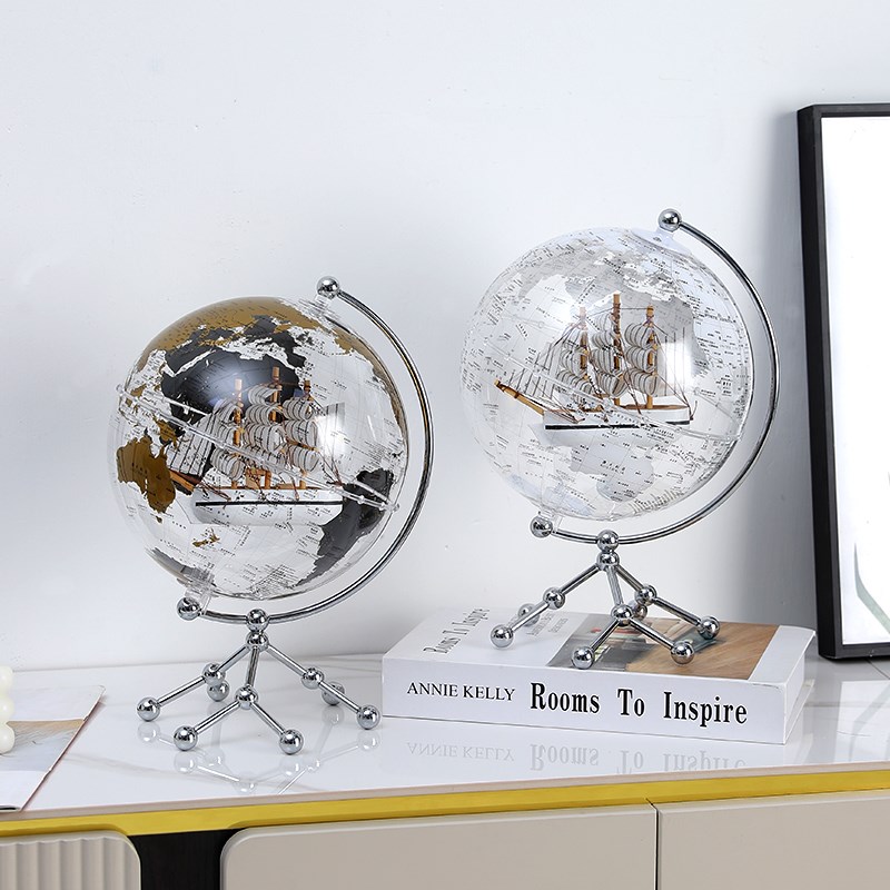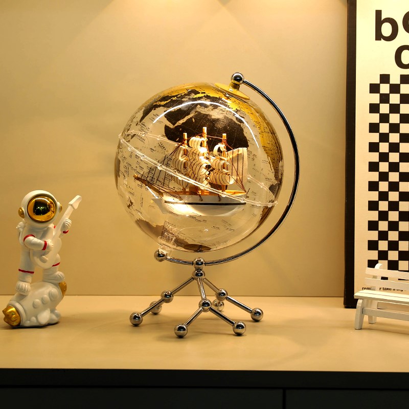 透明帆船地球仪摆件轻奢高档客厅家居装饰品带灯办T公室桌面工艺