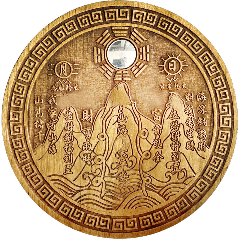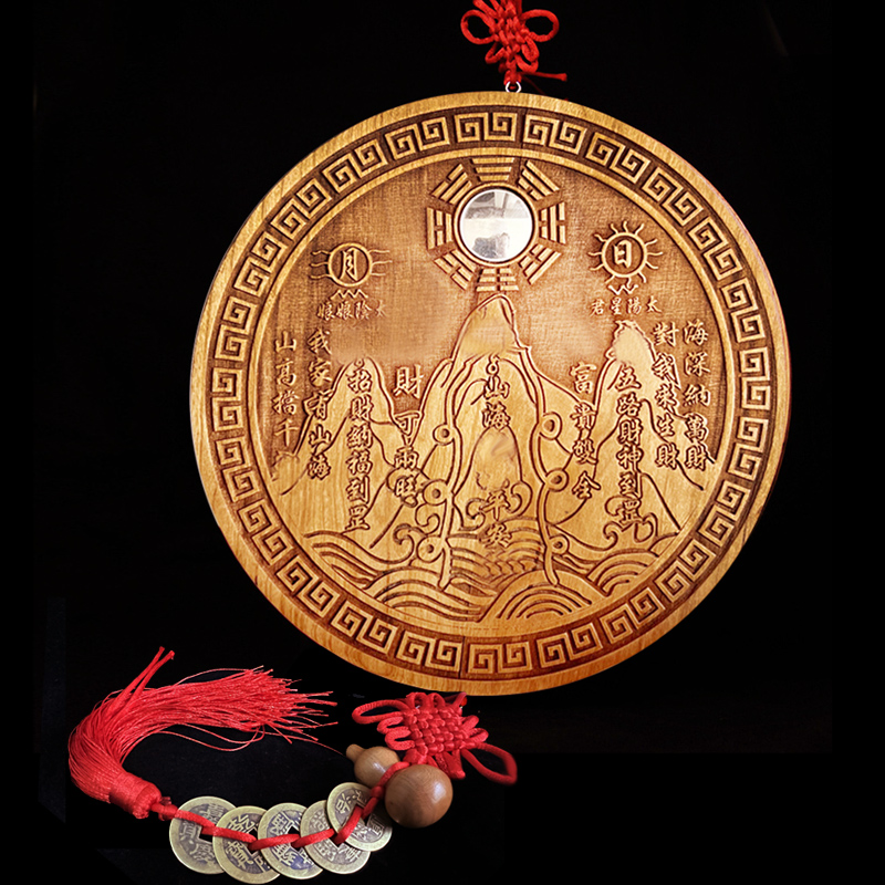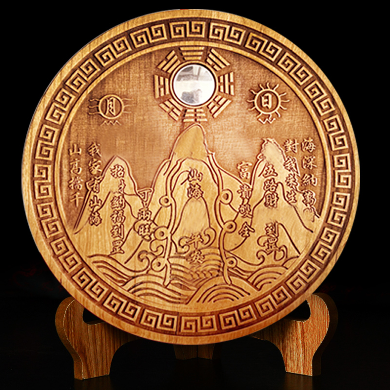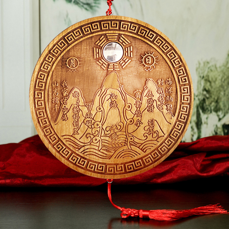 桃木山海镇牌八卦镜挂件房屋装饰摆件室内八卦凸镜山海图室外