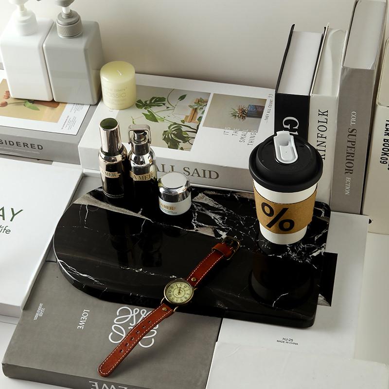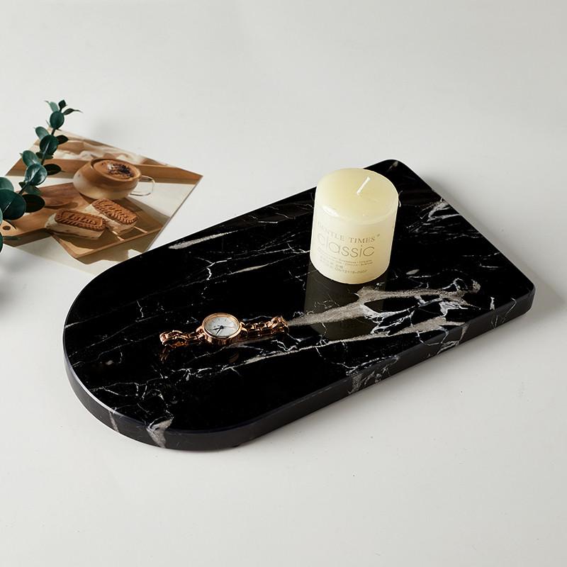 北欧轻奢天然大理石托盘半圆异型托盘样板间售楼处装饰摆件收纳盘
